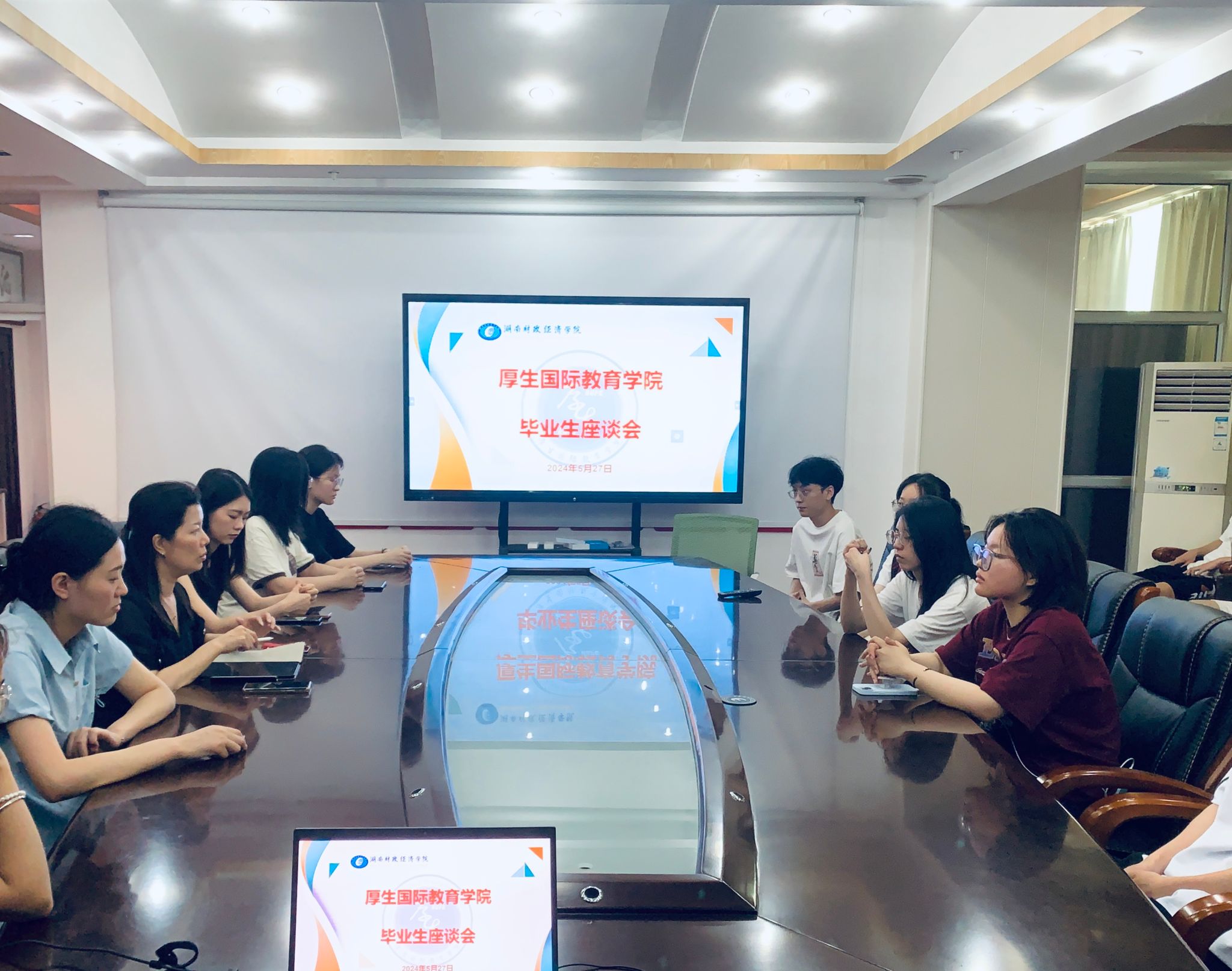 为促进学生顺利毕业和就业,5月27日,厚生国际教育学院2024届毕业生座谈会在办公楼829会议室顺利举行。厚生国际教育学院直属党支部书记肖平飞、国际合作与交流处副处长傅佳、辅导员陈伶俐、吴秋玉老师,以及部分毕业生代表参加了此次座谈。