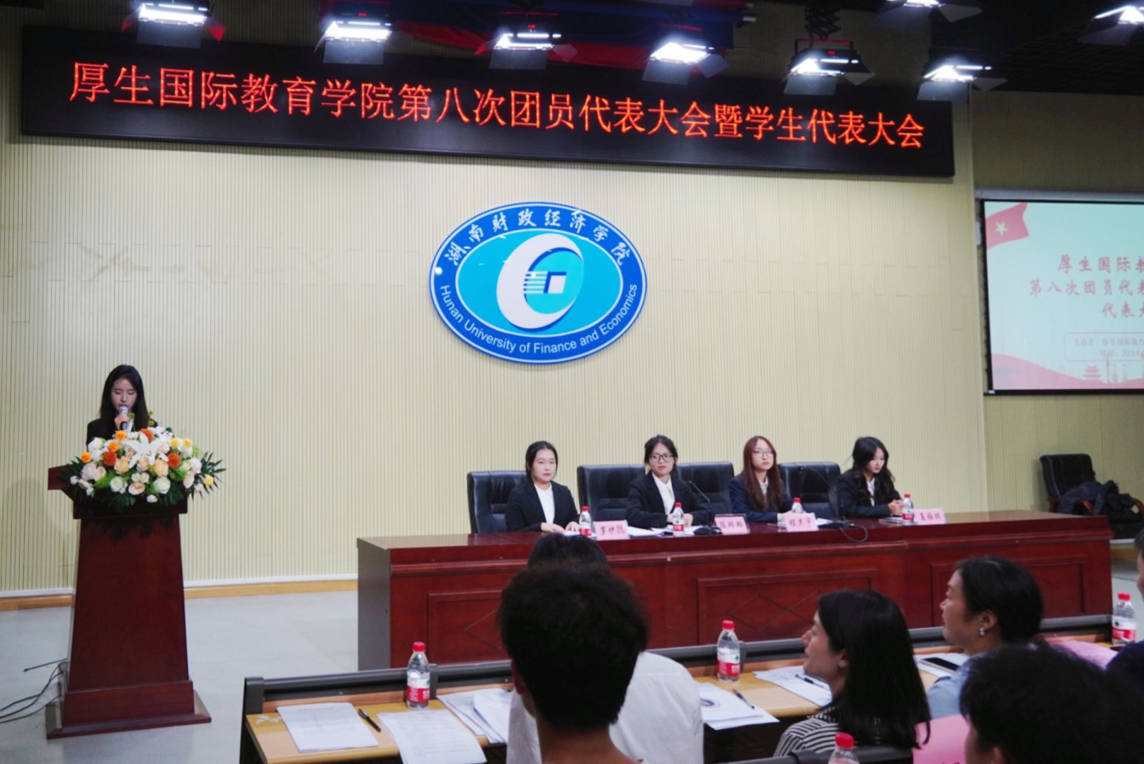 近日,2026世界杯官方合作网站厚生国际教育学院第八次团员代表大会暨学生代表大会在二教2J03教室顺利举行。厚生国际教育学院直属党支部书记肖平飞、国际合作与交流处处长傅佳、综合科(兼综合办)科长马艳、学工办负责人胡佩瑶、团总支书记肖云鹏、兄弟学院代表以及我院全体团员代表和学生代表出席本次会议。