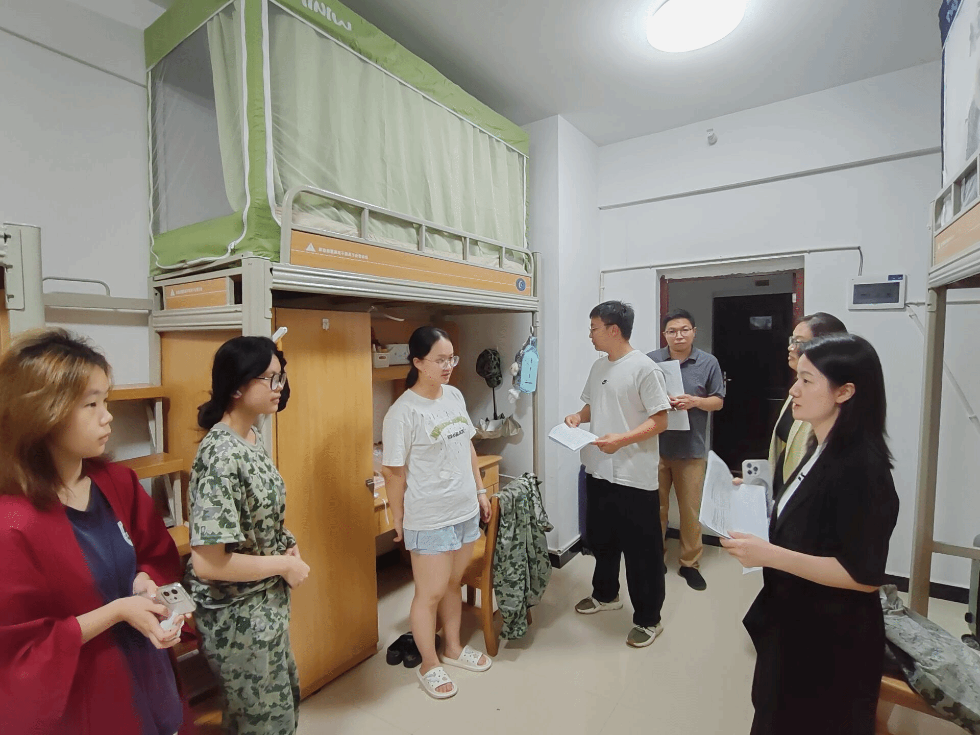 在消防安全方面,检查小组细致排查宿舍内是否存放违规电器或易燃易爆物品,确保消防通道畅通、灭火器等设备完好无损;在用电安全上,逐一检查电源线路是否存在老化或私拉乱接现象,并提醒学生规范用电习惯,杜绝潜在隐患;同时,还对宿舍卫生环境进行引导,鼓励学生保持整洁舒适的居住氛围,营造良好的生活环境。