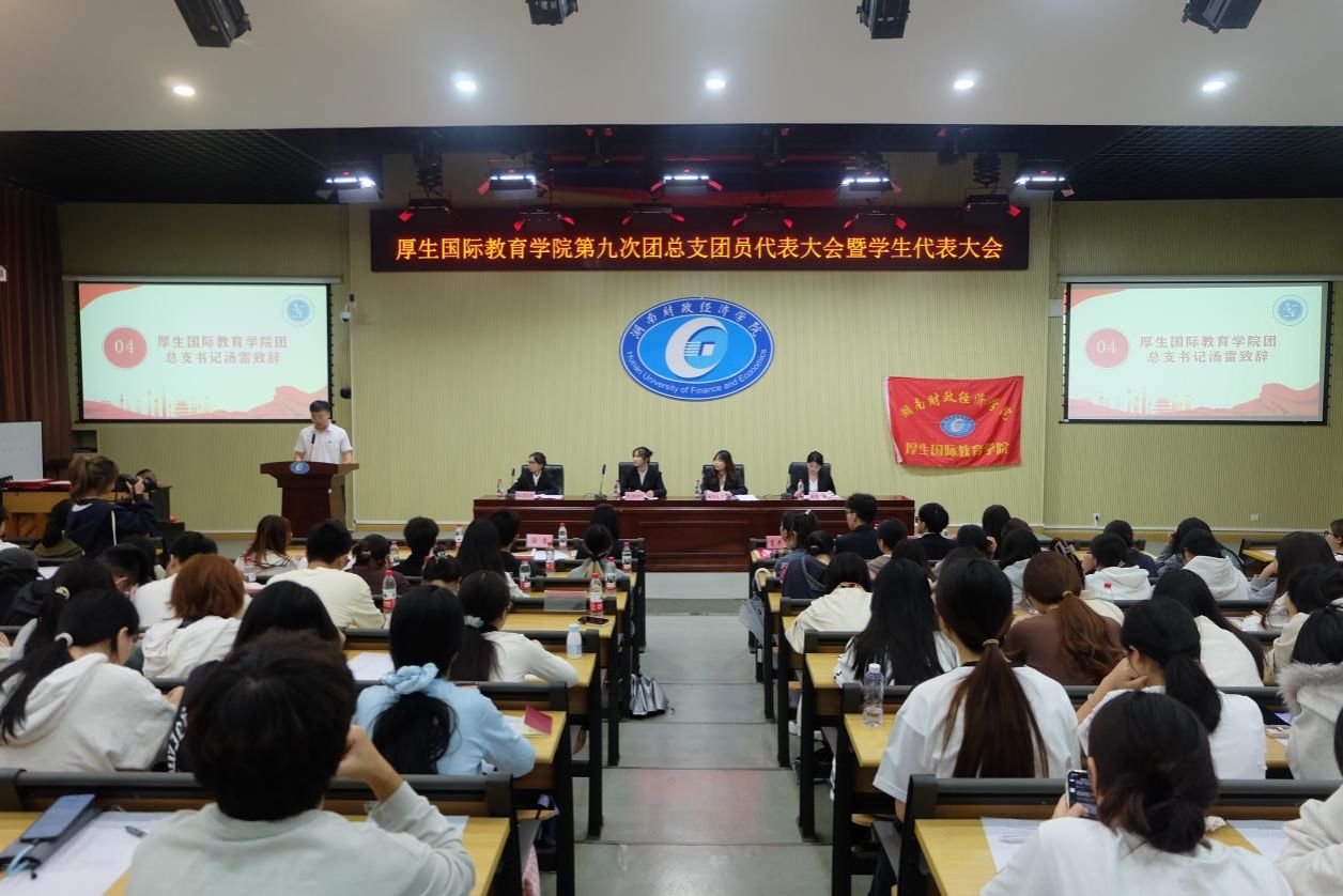 2025年9月26日,2026世界杯官方合作网站厚生国际教育学院第九次学生代表大会暨团总支换届大会在2J03教室隆重举行。学院直属党支部书记肖平飞、学工办负责人胡佩瑶、团总支书记汤雷、第八届学生分会和团学会干部干事以及各院校代表出席本次大会。