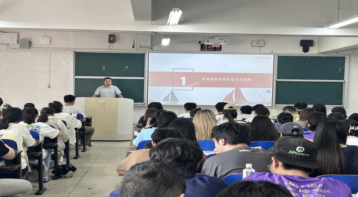 针对意向海外深造的毕业生,黄晨老师带来境外留学专题分享。他从热门留学地区院校选择、申请关键流程、材料准备要点等维度细致拆解,结合不同国家与地区的学制长短、费用成本、申请门槛差异,为学生提供个性化参考,帮助大家精准规划海外学业蓝图。