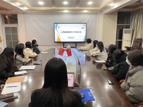2023年12月21日晚,我院在办公楼830会议室召开心理健康教育工作培训会,本次培训由我院心理专干吴秋玉主讲,朋辈心理辅导员以及各年级心理信息员参与此次培训。培训共分为心理健康知识的普及、心理危机干预和心理健康工作程序及要求三个部分。