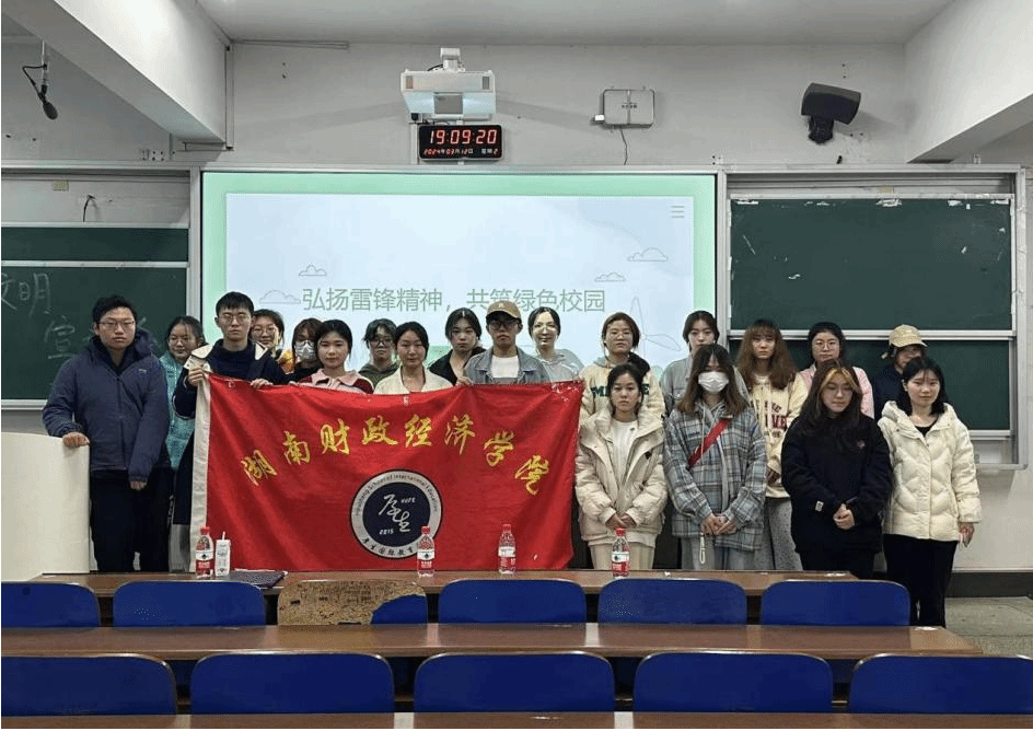 为学习贯彻习近平生态文明思想,提升青年大学生对生态文明的认识,传承和弘扬雷锋精神,厚生国际教育学院团总支社实部于2024年3月5日晚在3111教室举行了题为“弘扬雷锋精神,共筑绿色校园”的宣讲会,本次宣讲会由曾荟萍同学主讲,王筱烨同学主持。