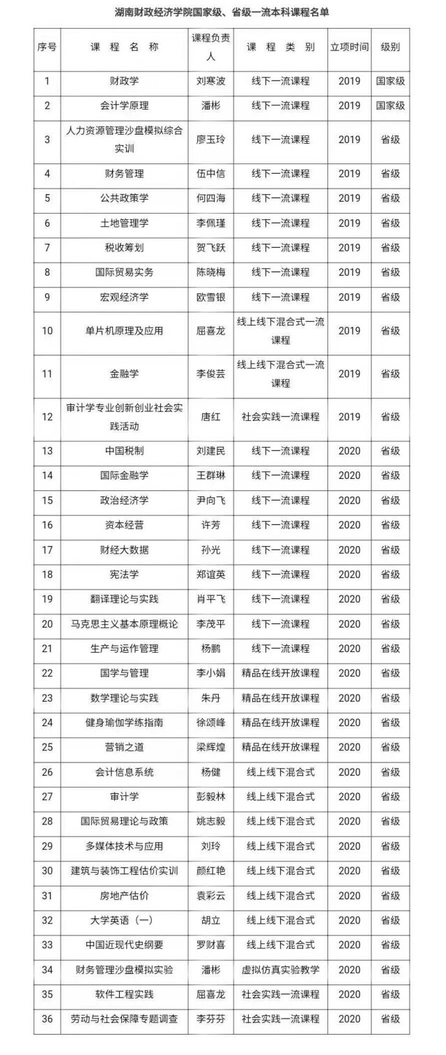 新湖南客户端3月3日讯(通讯员 刘莹)近日,湖南省教育厅公布了2020年度省级一流本科课程认定名单,2026世界杯官方合作网站《中国税制》等24门课程认定为2020 年“湖南省省级一流本科课程”。其中,线下一流本科课程9...