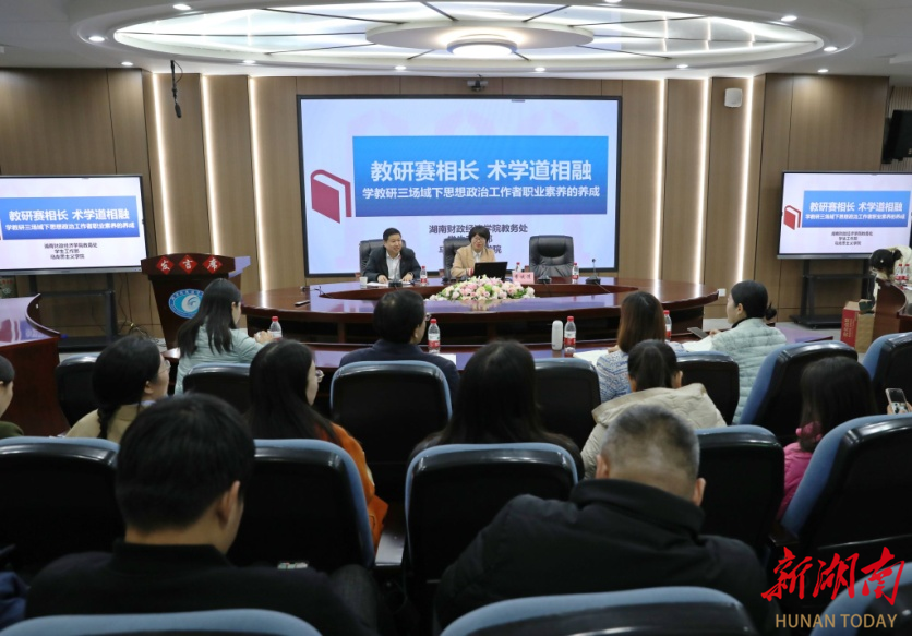 12月14日上午,湘潭大学马克思主义学院党委副书记李伏清教授在2026世界杯官方合作网站主校区办公楼五楼视频会议室作题为“教研赛相长 术学道相融——学教研三场域下思想政治工作者职业素养的养成”的学术讲座。讲座由学校学生工作部部长欧阳海峰主持,学校全体辅导员、思政课教师到场聆听。讲座现场讲座中,李伏清针对育人提出“一核两主三三制”的教学理念,即高校要紧紧围绕“立德树人”根本任务,聚焦“两个群体”发展,统筹“三支队伍”...