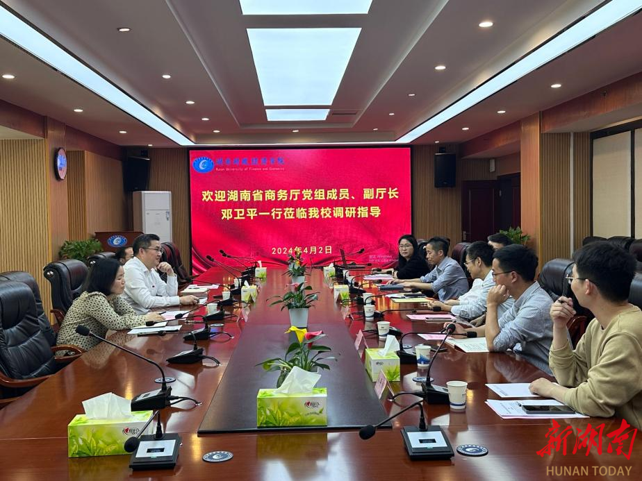 4月2日下午,湖南省商务厅党组成员、副厅长邓卫平一行来2026世界杯官方合作网站调研。校长刘长庚,财政金融学院、科研处负责人参加座谈。会议现场刘长庚对邓卫平一行表示热烈欢迎,简要介绍了学校历史沿革、师资队伍、学科建设、教学科研等情况,重点介绍了学校在课题承办、科研方面取得的成绩和优势。他表示,学校一直致力于为湖南高质量发展做出贡献,希望与省商务厅进一步加强交流合作,共同推动湖南经济社会发展。邓卫平表示,高校与政府部门的紧密合作是推动经济社会发展的重要途径之一,...
