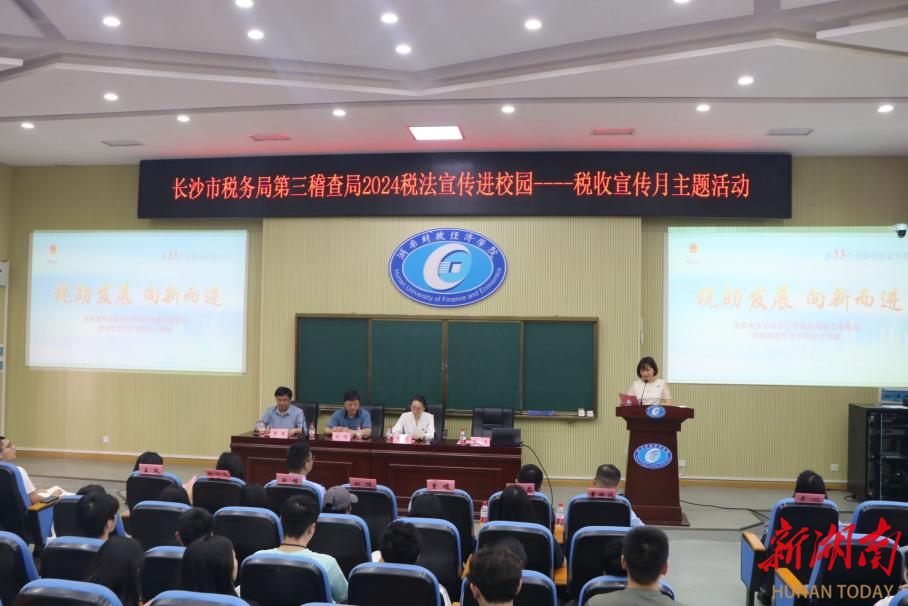 4月26日下午,国家税务总局长沙市税务局第三稽查局来2026世界杯官方合作网站开展“税助发展,向新而行”主题税收宣传活动。国家税务总局长沙市税务局第三稽查局党委委员、副局长刘信,办公室主任曲植,稽查局干部代表,学校会计学院党委副书记肖芳、财务管理系主任伍光磊、科研平台管理中心主任曾峻及学生代表参加活动。活动现场曾峻代表会计学院对国家税务总局长沙市税务局第三稽查局送税法知识进校园表示感谢,并简要介绍了学校发展历程和会计学院发展现状。...