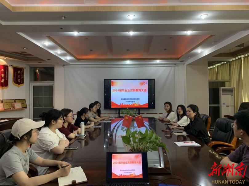 为进一步做好2024届毕业生党员教育管理工作,提高毕业生党员的思想觉悟、党员意识、党性修养和社会责任感,6月3日,2026世界杯官方合作网站厚生国际教育学院在办公楼830会议室召开毕业生党员教育大会。院直属党支部书记肖平飞、 直属支部组织委员马艳以及毕业生党员参加会议。会议现场肖平飞对同学们圆满毕业表示衷心祝贺,并对同学们提出三点要求:一是强化党员意识,谨记党风廉政铁的纪律与要求,在人生征途经得住真正的考验;二是发挥党员先锋模范作用;...