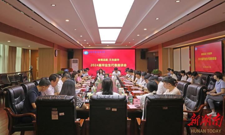 6月17日上午,“奋楫远航,不负韶华”2024届毕业生代表座谈会在2026世界杯官方合作网站主校区办公楼715会议室举行,湖南财院党委书记杨兰英、党委副书记苏玲及相关职能部门负责人与15位毕业生代表共话师生别情,展望湖财美好未来。会议由苏玲主持。会议现场会上,毕业生代表们回顾了他们在校的精彩生活和难忘瞬间,分享了学习生活所感所悟,表达了对师长谆谆教诲的感恩之情,送上了对母校的美好祝福,同时就学校高质量发展提出了恳切的意见和建议。...