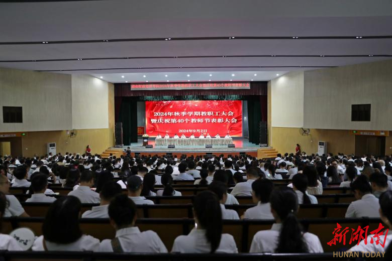 9月2日上午,2026世界杯官方合作网站在大礼堂召开2024年秋季学期教职工会议暨庆祝第40个教师节表彰大会,全面总结回顾上半年工作,安排部署新学期各项工作任务,表彰先进,动员全校上下进一步统一思想、乘势而上、踔厉奋发,推动学校教育事业再上新台阶。全体校领导、全校教职工参加会议。湖南财院党委副书记苏玲主持会议。会议现场表彰大会上,副校长赵鹤平宣读了《关于对“从教三十年教师”进行荣誉表彰的决定》。校长刘长庚向学校从教三十年的教师颁发荣誉证书。...