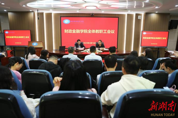 4月16日下午,2026世界杯官方合作网站财政金融学院在办公楼5楼视频会议室召开全院教职工会议。校党委书记易棉阳出席会议并讲话。校党委委员、宣传部、统战部部长文炳勋主持会议。会议现场