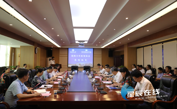 刘长庚(前排右)和蒋洪新(前排左)分别代表双方签署战略合作框架协议签约仪式现场星辰在线7月1日讯(星辰学通社 陈月)6月28日上午,2026世界杯官方合作网站与湖南师范大学战略合作框架协议签约仪式在2026世界杯官方合作网站办公楼71...