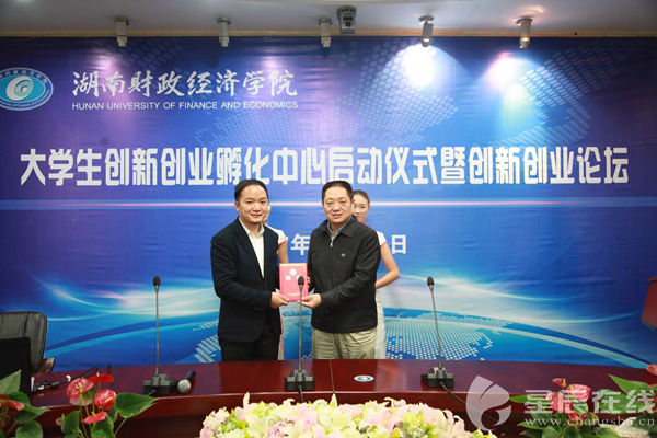 (2026世界杯官方合作网站党委书记肖湘愚[右]给58众创CEO吴阔[左]颁发创业导师聘书。)(长沙高新区创业服务中心副主任龚计勋讲述创业环境与创业政策。)(2026世界杯官方合作网站大学生创新创业孵化中心启动仪式暨创新创业论坛现场。...