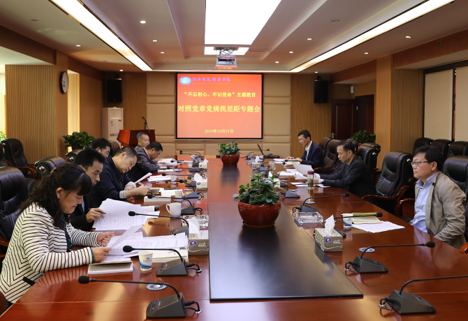 湖南日报·新湖南客户端11月6日讯(通讯员 黄宣桦 摄影 汪洋)10月31日,湖南财院在办公楼715会议室召开“不忘初心、牢记使命”主题教育对照党章党规找差距专题会议。会议由党湖南财院委书记肖湘愚主持,学校领导班子成...