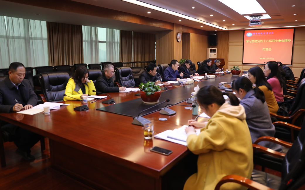 湖南日报·新湖南客户端12月30日讯(通讯员 唐雄伟)12月25日下午,湖南财院在办公楼715会议室召开会议,专题部署学习贯彻党的十九届四中全会精神。会议由湖南财院党委书记肖湘愚主持,纪委书记李雪山,党委委员、组织...