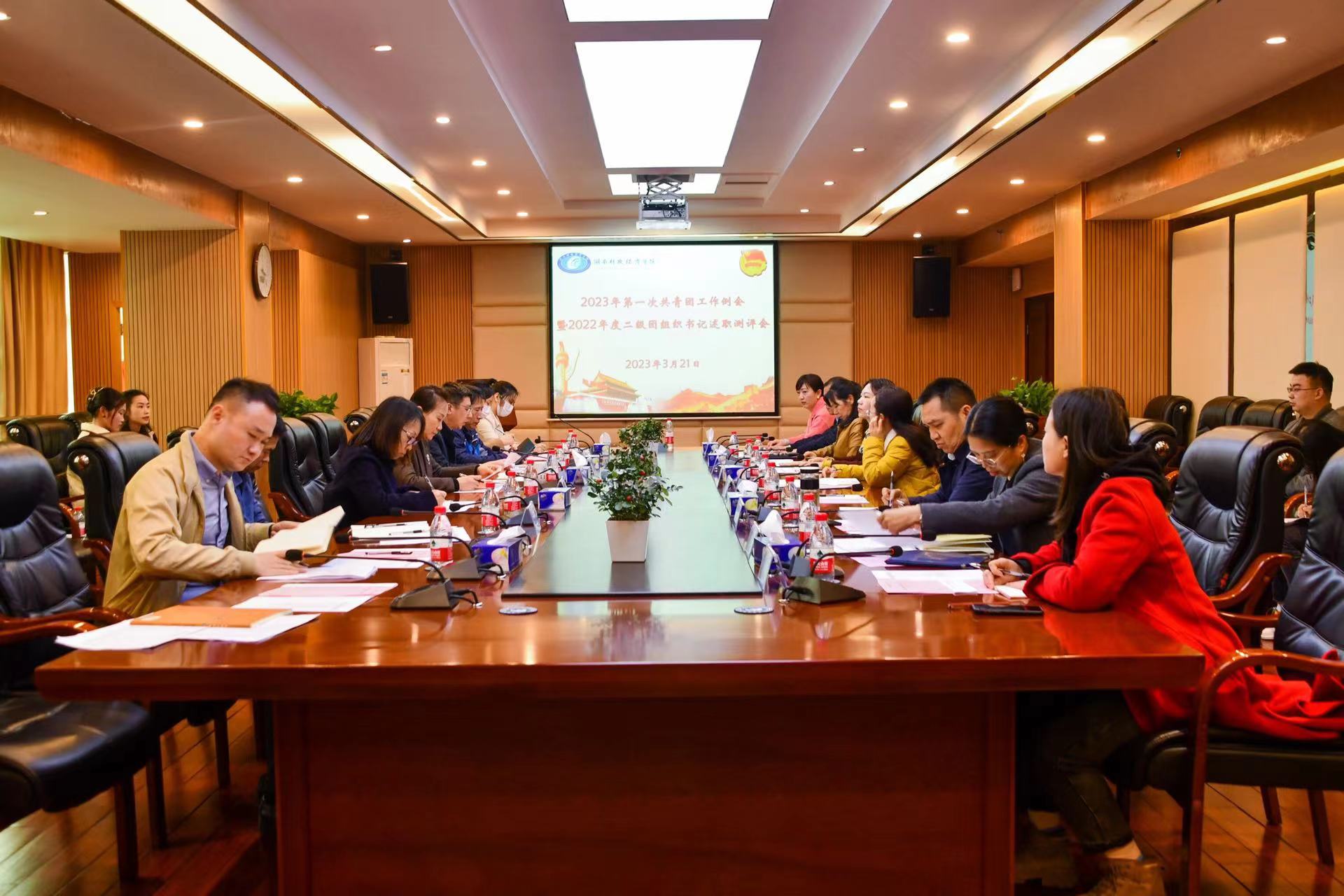 (本网讯)3月21日,世界杯官网2022年度二级团组织书记述职测评会在办公楼715会议室召开。校党委副书记苏玲,各二级学院党组织副书记、团总支书记,团委全体工作人员参会。团委书记刘天浩主持会议。会议现场各二级团组织书...