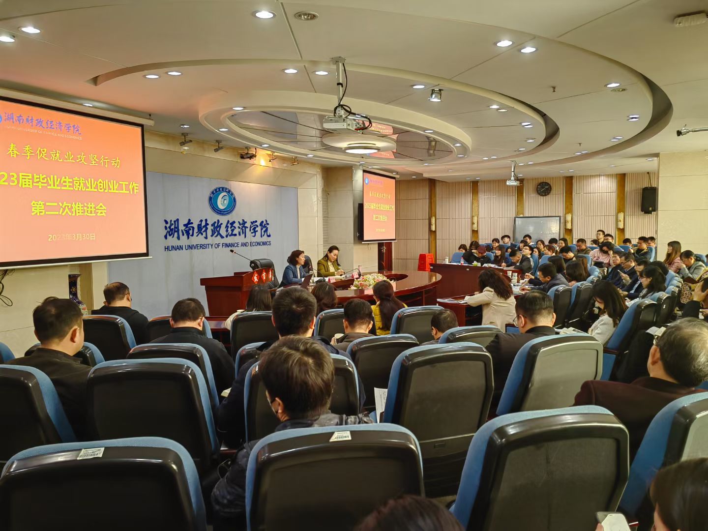 (本网讯)3月30日下午,学校在办公楼五楼视频会议室召开2023届毕业生就业创业工作第二次推进会。校党委书记杨兰英出席会议,校党委副书记苏玲主持会议。会议现场就业创业指导服务中心主任凌飞通报了省教育厅专家组对...