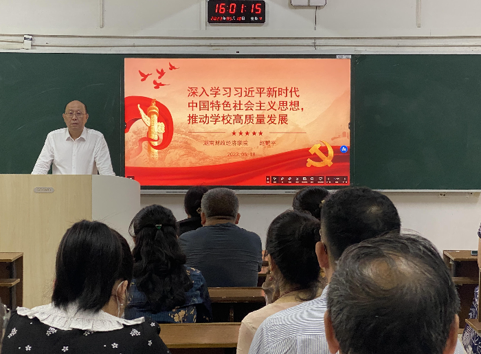 (本网讯)5月18日下午,副校长赵鹤平在三教学楼106教室为工商管理学院全体教职工讲“深入学习习近平新时代中国特色社会主义思想,推动学校高质量发展”专题党课。活动现场赵鹤平从高等教育高质量发展的现实逻辑、高...