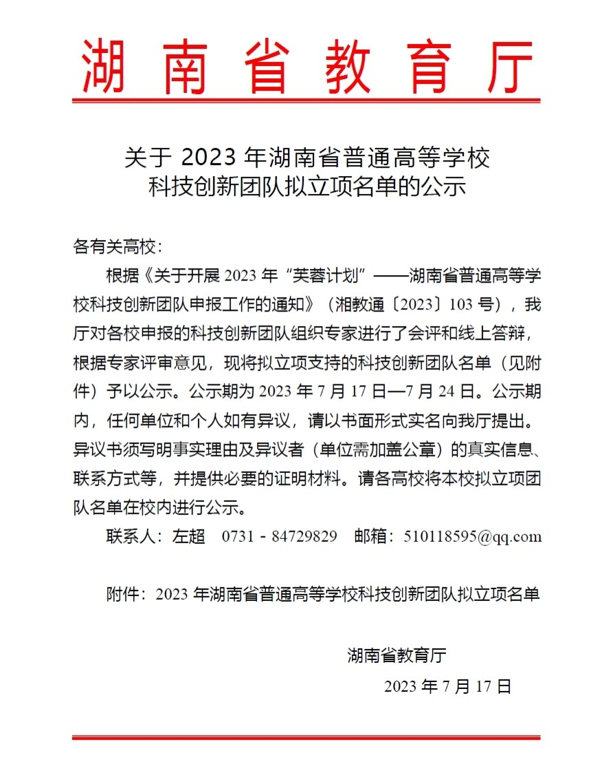 (本网讯)近日,湖南省教育厅发布了《关于2023年湖南省普通高等学校科技创新团队拟立项名单的公示》,世界杯官网经济地理学院(湖南省经济地理研究所)彭文斌教授牵头申报的“国土空间数智规划与生态治理”团队获批2023年...