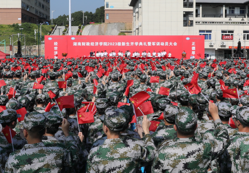 (本网讯)9月10日上午,学校举行2023级新生开学典礼暨军训动员大会,6000余名新“湖财人”齐聚雷锋校区田径场,满怀对未来的憧憬,以昂扬的青春姿态展翅新篇章、筑梦新征程。校长刘长庚勉励新生厚植家国情怀、涵养进...