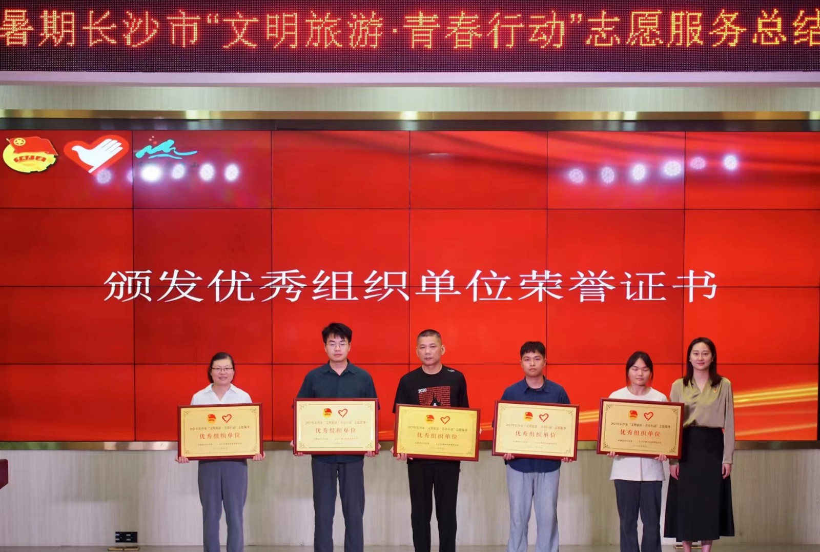 (本网讯)9月15日,2023年暑期长沙市“文明旅游·青春行动”志愿服务总结大会在长沙市青少年宫召开,主办单位对此次活动中表现突出的集体和个人进行颁奖,世界杯官网团委获评优秀组织单位。颁奖现场 此次活动由...