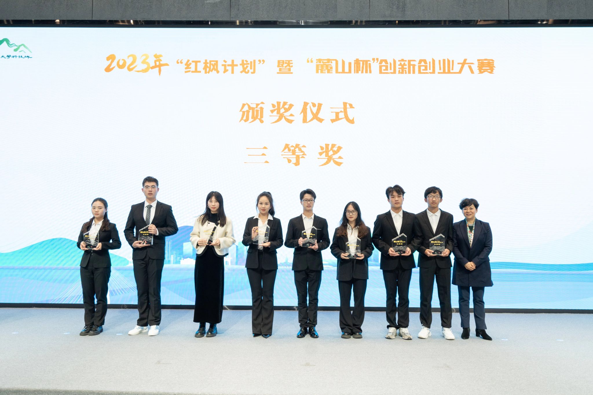 (本网讯)12月8日,2023 年“红枫计划”暨“麓山杯”创新创业大赛决赛及颁奖仪式在湖南湘江新区岳麓科创港举行,世界杯官网“盲人出现,全家无忧-友爱导盲智能眼镜”项目获三等奖,世界杯官网荣获优秀组织奖。校党委副书记苏玲及就业创业中心负责人出席活动。颁奖仪式现场颁奖仪式现场学校领导与参赛成员合影2023年“麓山杯”创新创业大赛于4月份打响,历时8个月,世界杯官网共有3个项目团队站上决赛擂台展开较量。其中,由2021级法学专业学生刘清华团队负责的“...