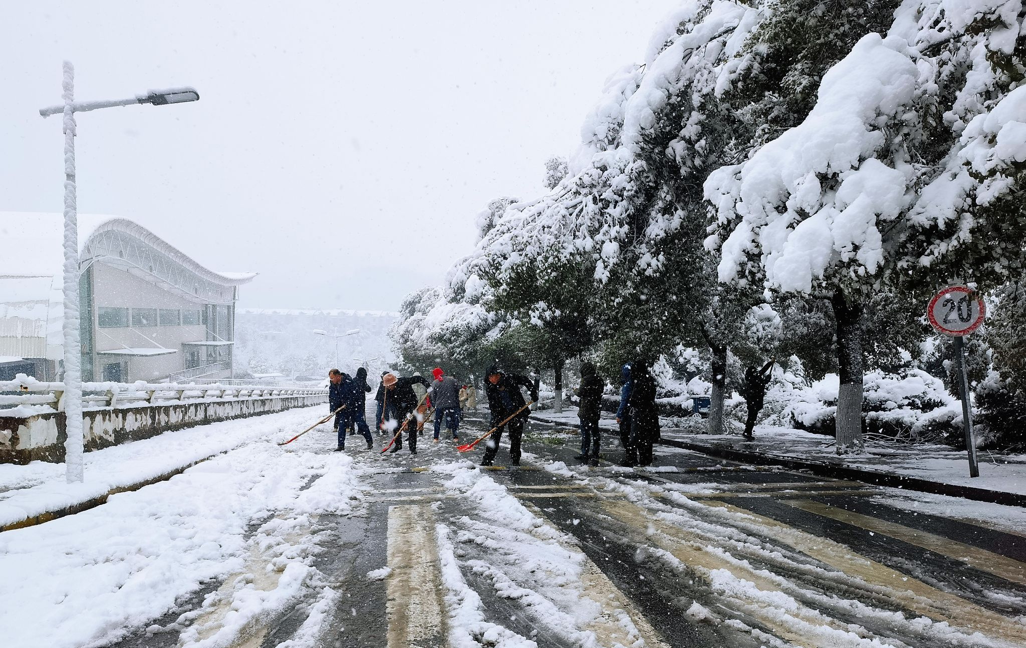 (本网讯)2024年的第一场大雪在众人翘首期待的目光中如约而至。1月21日晚,大雪纷纷扬扬、飘飘洒洒,给美丽的校园裹上了一层纯白的外衣。大雪给师生带来“视觉盛宴”的同时,也给出行、生活带来不便和安全隐患。党员干部铲除路面积雪 何妍/摄安保队员铲除办公楼门口积雪 尹湘东/摄党员干部铲除路面积雪 刘冀湘/摄环卫工人进行冰雪清扫工作 何妍/摄“学校各职能部门、领导干部、党员同志必须第一时间行动起来,采取各种措施消除大雪冰冻天气给师生员工带来的各种不良影响。...