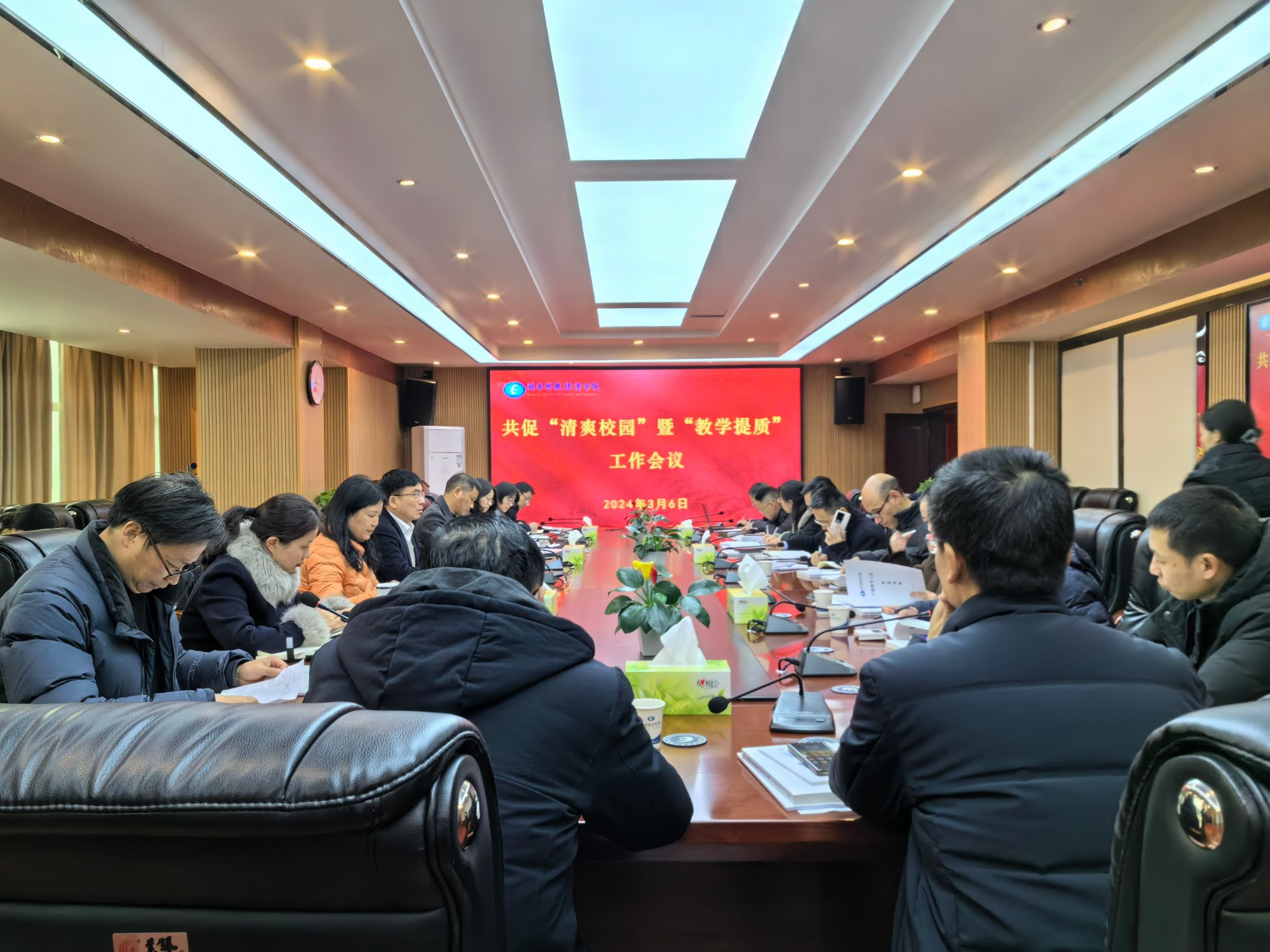 3月6日下午,世界杯官网在715会议室召开共促“清爽校园”暨“教学提质”工作会议。副校长郭国强,教务处、实验教学与网络技术中心、教学质量监控与评估中心负责人,各二级学院负责人出席会议。会议由郭国强主持。