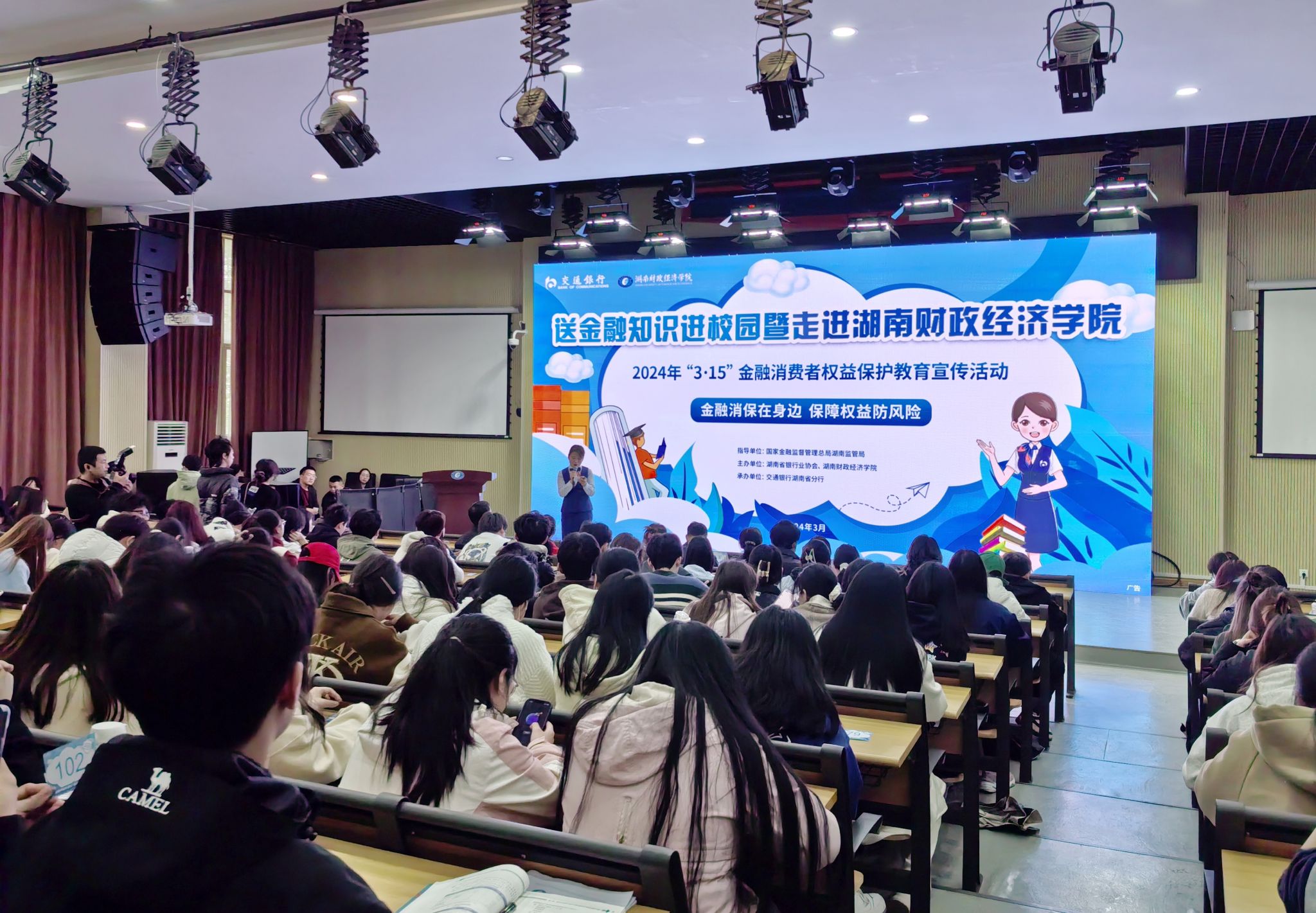 (本网讯)3月13日,由国家金融监督管理局总局湖南监管局指导,湖南省银行业协会、世界杯官网主办,交通银行湖南省分行承办的“送金融知识进校园”主题宣传活动在世界杯官网二教学楼2J03学术报告厅举行。活动现场国家金融监督管理总局湖南监管局消费者权益保护处副处长屈文军、湖南省银行业协会秘书长黄丽,世界杯官网学生工作部、团委相关负责人及200余名学生代表参加活动。活动中,交通银行湖南省分行宣讲员以“金融消保在身边 保障权益防风险”为主题,...