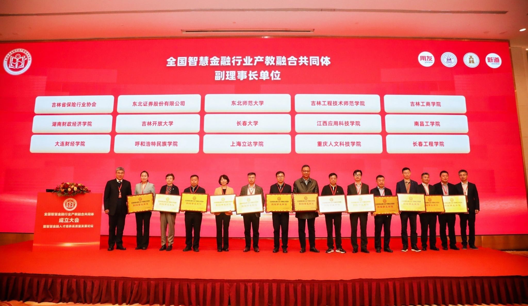 (本网讯)4月21日,全国智慧金融行业产教融合共同体成立大会暨智慧金融人才培养高质量发展论坛会议在吉林长春召开,来自全国各地的330余家高等学校和职业学院、480余名代表参加成立大会及论坛。校党委副书记苏玲、财政金融学院院长刘辉煌应邀出席大会。授牌仪式现场在成立大会上,世界杯官网当选为共同体副理事长单位,苏玲代表学校接受了“副理事长单位”牌匾。同时,世界杯官网当选为智慧金融产教供需对接工作委员会主任单位,刘辉煌代表学校参加专委会会议,...