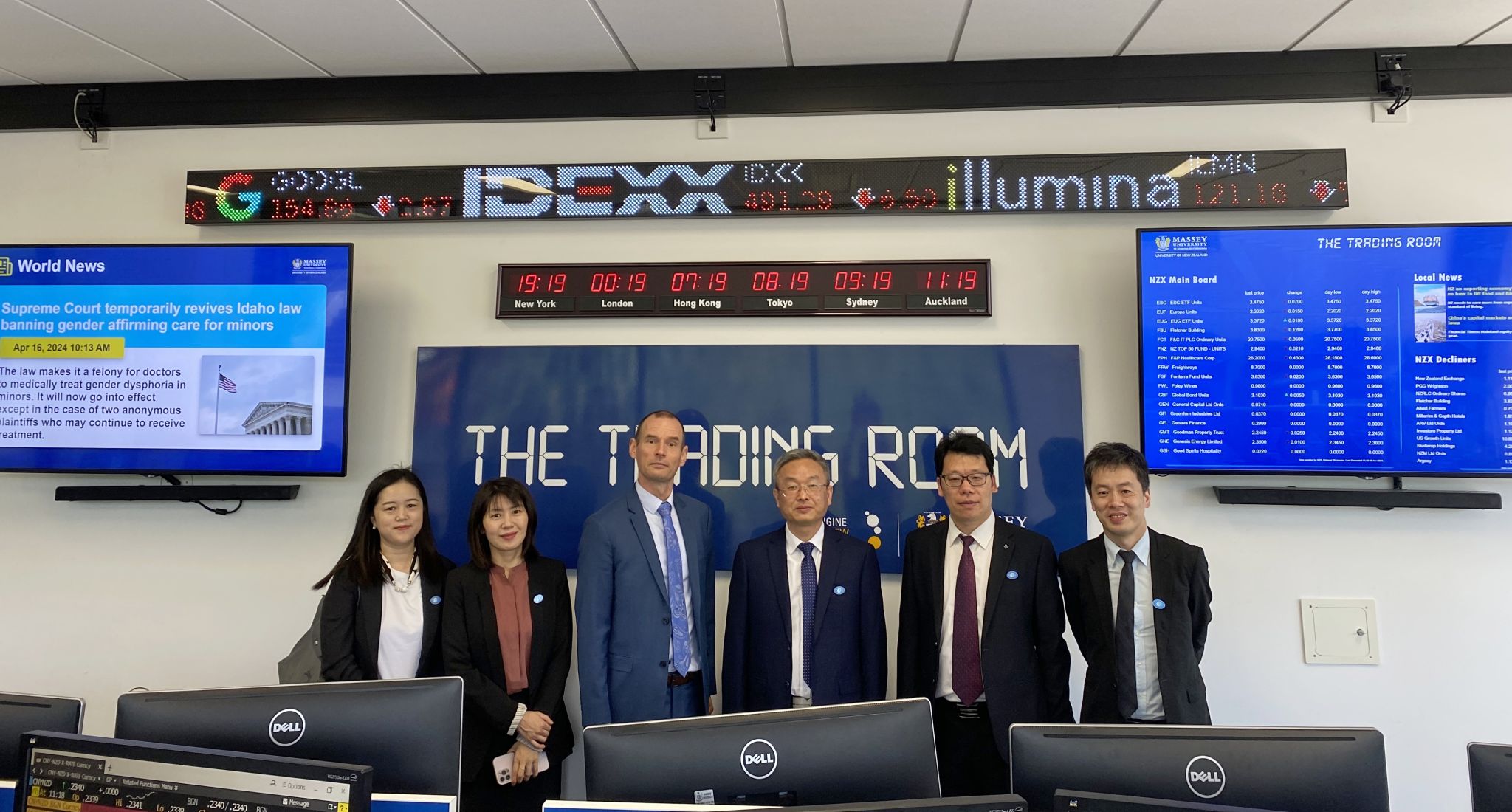 (本网讯)4月15日至20日,副校长刘钟理率团赴新西兰和澳大利亚,访问多所当地知名高校和机构,巩固和拓宽国际交流合作渠道。国际合作与交流处、财政金融学院、外国语学院相关负责人随团出访。与奥克兰大学会谈现场参观梅西大学股票模拟交易实训室在新西兰期间, 刘钟理与奥克兰大学外事负责人肯尼斯详细探讨了学生联合培养项目和假期访学项目,并签署了《合作意向协议》;与梅西大学校董、副校长克里斯托弗就学生交换项目和教师访学项目展开深入探讨,...