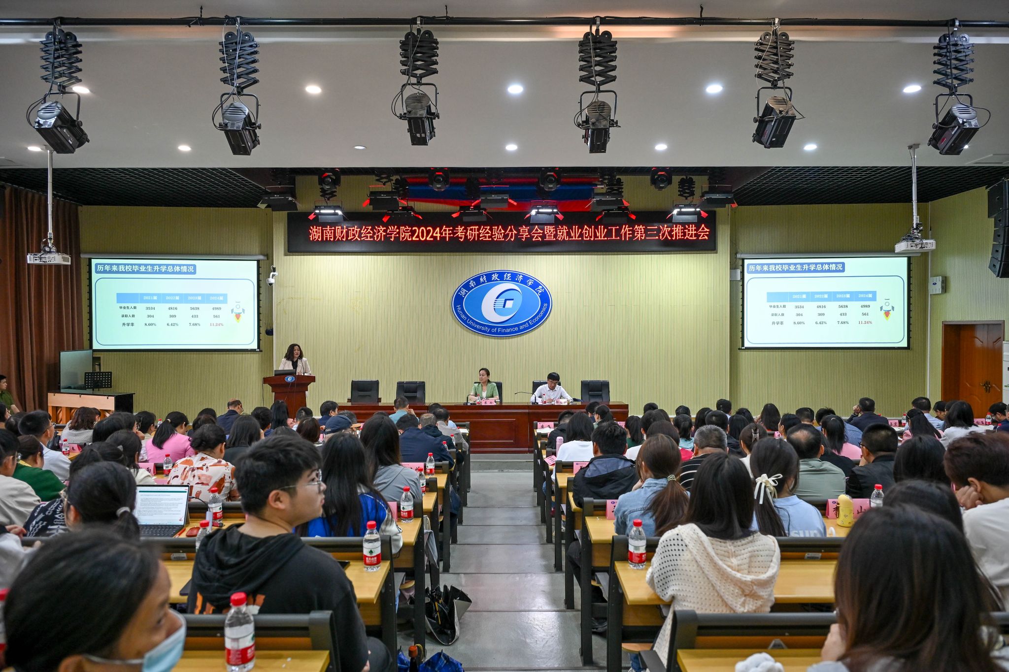 (本网讯)4月30日上午,世界杯官网在二教学楼2J03学术报告厅召开2024年考研经验分享会暨就业创业工作第三次推进会。会议由校党委副书记苏玲主持。副校长郭国强,学生工作部、教务处、团委、就业创业中心主要负责人,各二级学院党政主要负责人、全体专兼职辅导员、教师代表和有考研意向的学生参加会议。会议现场考研经验分享会上,就业创业中心主任凌飞介绍了2024年世界杯官网学生考研情况。体育学院2022级休闲体育专业(专升本)学生谢媛媛、2020级休闲体育3栋726宿舍代表单小美(...