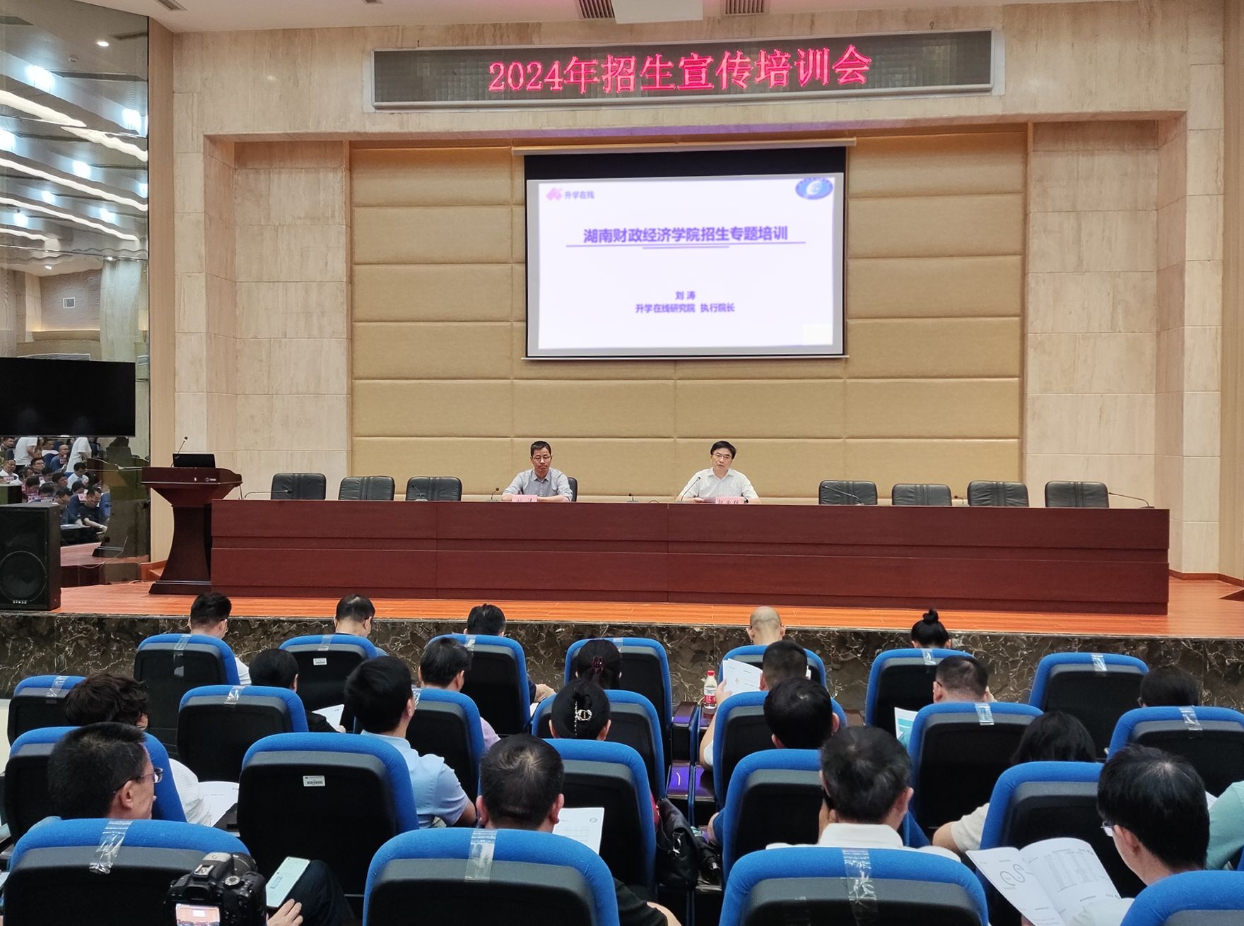 (本网讯)为推动招生宣传工作顺利开展,强化招生宣传工作成效,5月29日下午,学校在图书馆4楼学术报告厅召开2024年招生宣传培训会。副校长郭国强主持会议。 培训会现场会上,升学在线研究院执行院长刘涛分析了新高考背景下财经类院校招生面临的严峻形势,并围绕如何做好招生宣传工作从志愿填报指导、咨询沟通技巧、生源三段锁定法等方面进行了培训。郭国强强调,在新高考政策和宏观形势的影响下,学校的招生宣传工作更具重要性与紧迫性。...
