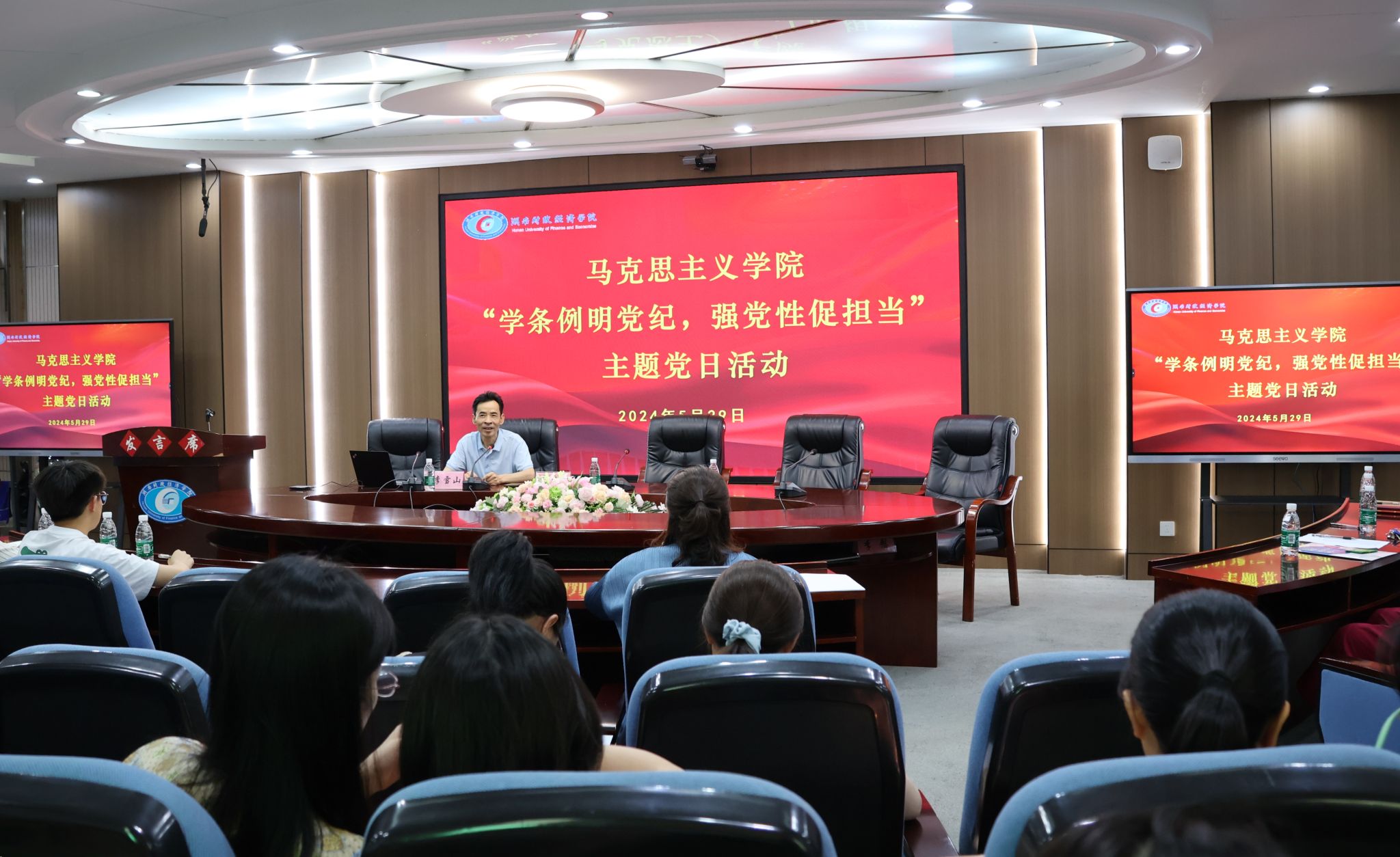 (本网讯)5月29日下午,校纪委书记李雪山在办公楼五楼视频会议室为马克思主义学院全体党员讲授“党纪学习教育”专题党课。活动由院直属党支部组织委员周奕主持。活动现场李雪山以“学条例 明规矩 守纪律 强党性”为主题,深入解读了《中国共产党纪律处分条例》修订的重大意义和主旨要义,采用案例分析方式警示全体党员要清晰认识到党纪的严肃性和不可逾越性。他提出了抓好《条例》贯彻执行的三条路径:一是在服务党和国家大局中学习领会《...