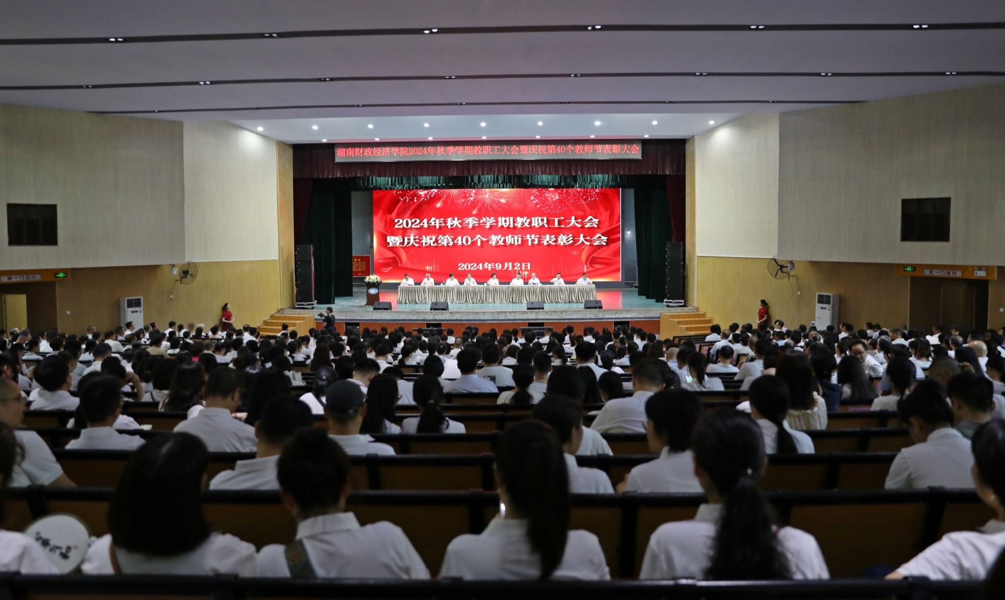 (本网讯)9月2日上午,学校在大礼堂召开2024年秋季学期教职工会议暨庆祝第40个教师节表彰大会,全面总结回顾上半年工作,安排部署新学期各项工作任务,表彰先进,动员全校上下进一步统一思想、乘势而上、踔厉奋发,推动学校教育事业再上新台阶。全体校领导、全校教职工参加会议。校党委副书记苏玲主持会议。会议现场 何妍/摄表彰大会上,副校长赵鹤平宣读了《关于对“从教三十年教师”进行荣誉表彰的决定》。校长刘长庚向学校从教三十年的教师颁发荣誉证书。...