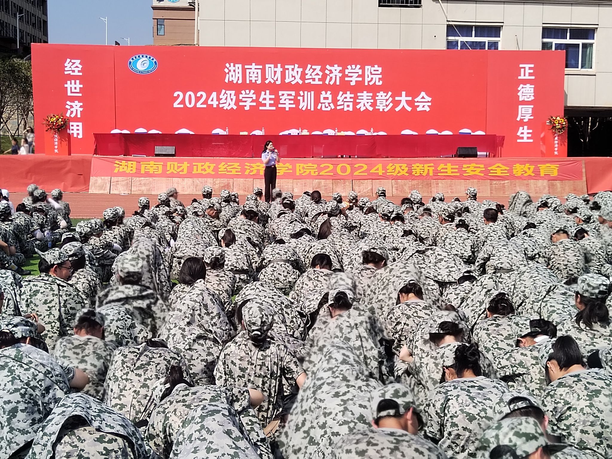 (本网讯)金秋九月,燃情湖财。9月30日上午,学校2024级学生军训总结表彰大会在雷锋校区田径场举行,6000余名学子身着戎装,以最饱满的热情汇报军训成果。大会现场 伍立城/摄校党委副书记苏玲,副校长郭国强,校党委委员、宣传统战部部长文炳勋出席大会。相关职能部门、二级学院负责人,全体2024级学生辅导员、承训教官及参训学生参加大会。大会由学生工作部、武装部部长欧阳海峰主持。升旗仪式 马致炫/摄分列式汇报表演 马致炫/摄分列式汇报表演 ...