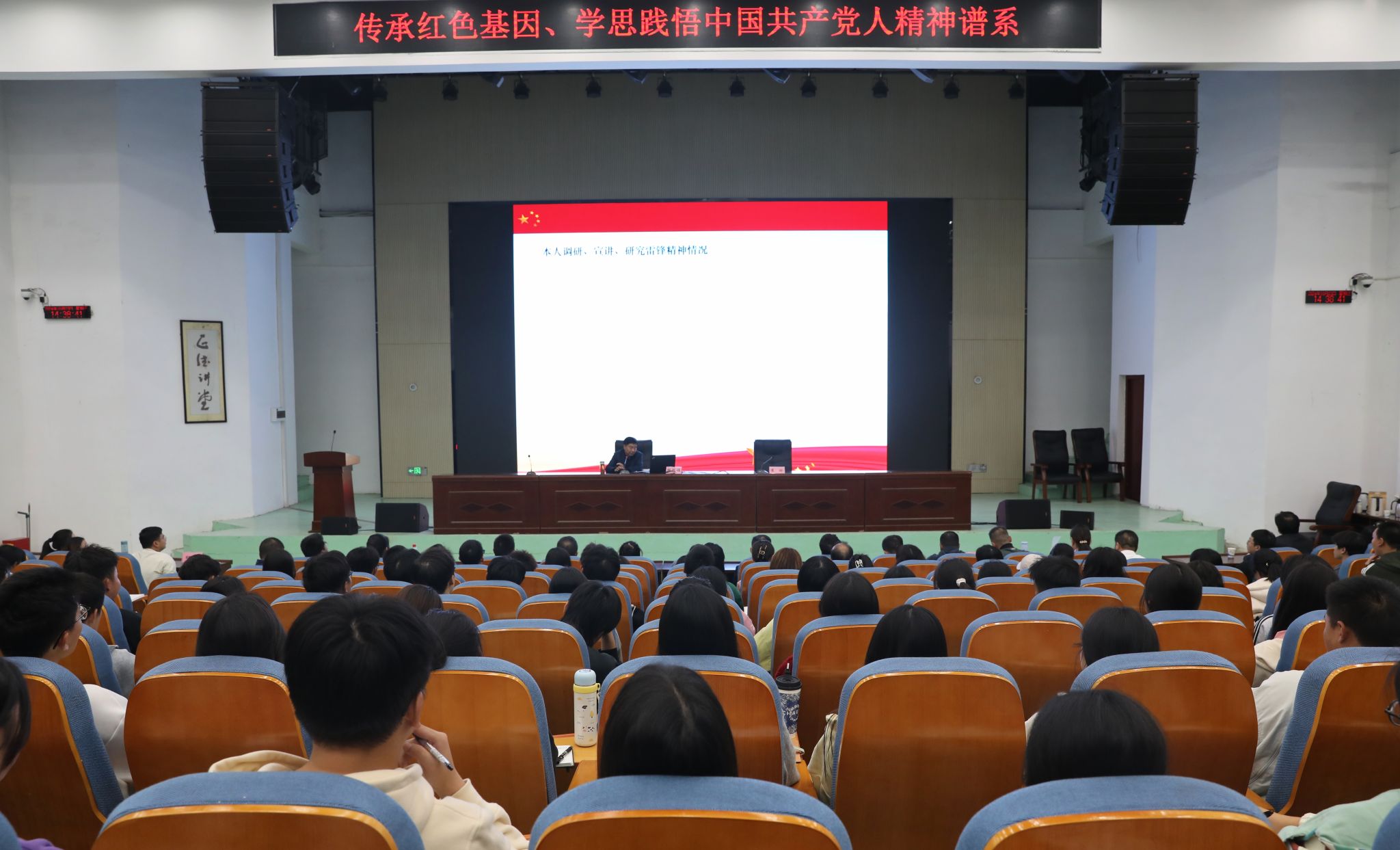 (本网讯)10月23日,“传承红色基因、学思践悟中国共产党人精神谱系”主题正德讲堂在学校雷锋书院至诚楼L1114学术报告厅开讲。本期讲堂由省社会科学院二级研究员、省人民政府参事、国务院特殊津贴专家胡跃福教授主讲。校党委副书记、雷锋书院院长苏玲主持会议,雷锋书院全体教职工、各学馆值班人员以及学生代表参加。活动现场 朱朝熙/摄胡跃福从“雷锋其人与雷锋精神的实质”入题,回答了“新时代为什么还要学雷锋”这一问题,结合丰富详实的资料,...