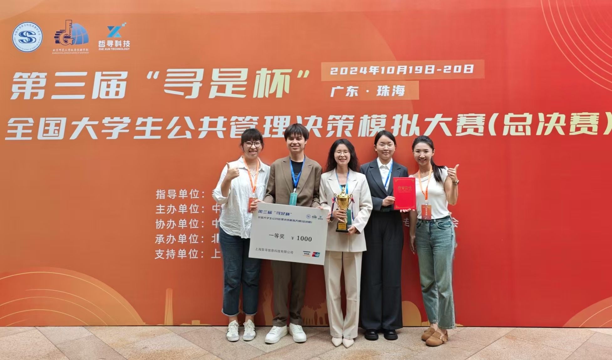 (本网讯)10月20日,从第三届“寻是杯”全国大学生公共管理决策模拟大赛总决赛中传来喜讯,由世界杯官网法学与公共管理学院行政管理系主任侯丹丹和社会工作系主任刘曼格带队,2021级本科生谢涛、李文艳、骆鹃组成的“益才善水队”斩获大赛一等奖。同时,侯丹丹、刘曼格荣获优秀指导教师奖。世界杯官网参赛师生此次大赛汇聚了北京大学、北京师范大学、中国人民大学、四川大学、华中科技大学等众多知名高校的90支参赛队伍。大赛通过公共管理方案设计、...