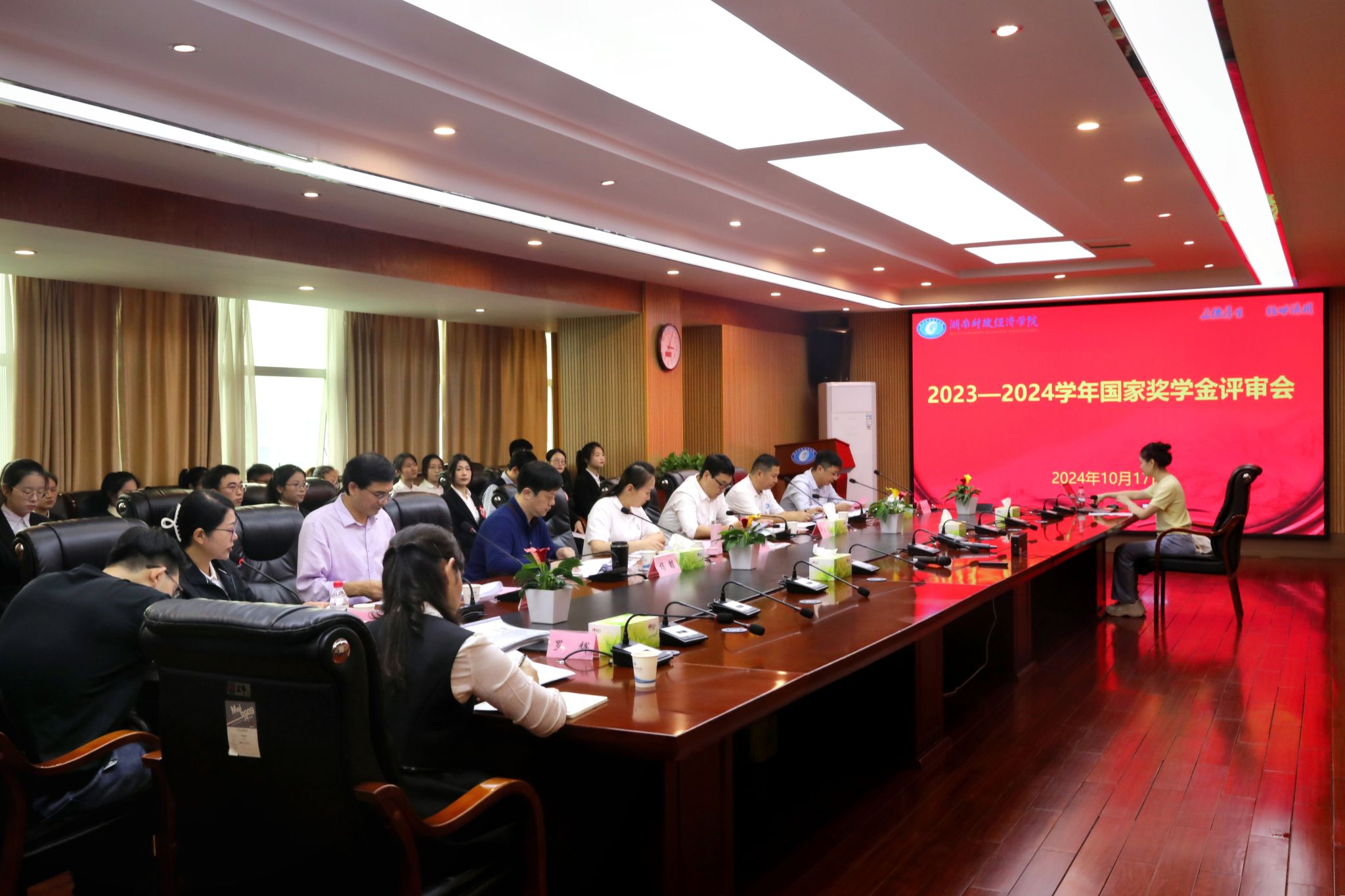 (本网讯)10月17日下午,学校在办公楼715会议室召开2023-2024学年国家奖学金评审会。校党委副书记苏玲,党政办公室、组织部、学生工作部、就业创业中心、团委等职能部门主要负责人担任评委。会议由学生工作部副部长李六华主持。评审会现场评审会上,李六华就国家奖学金工作部署情况、评选标准、评选条件、评审程序和名额分配进行了详细说明。候选人展示34名国家奖学金候选人依次陈述展示了各自在学业科研、社会实践、创新创业、志愿服务以及党团活动等领域所取得的成绩。...