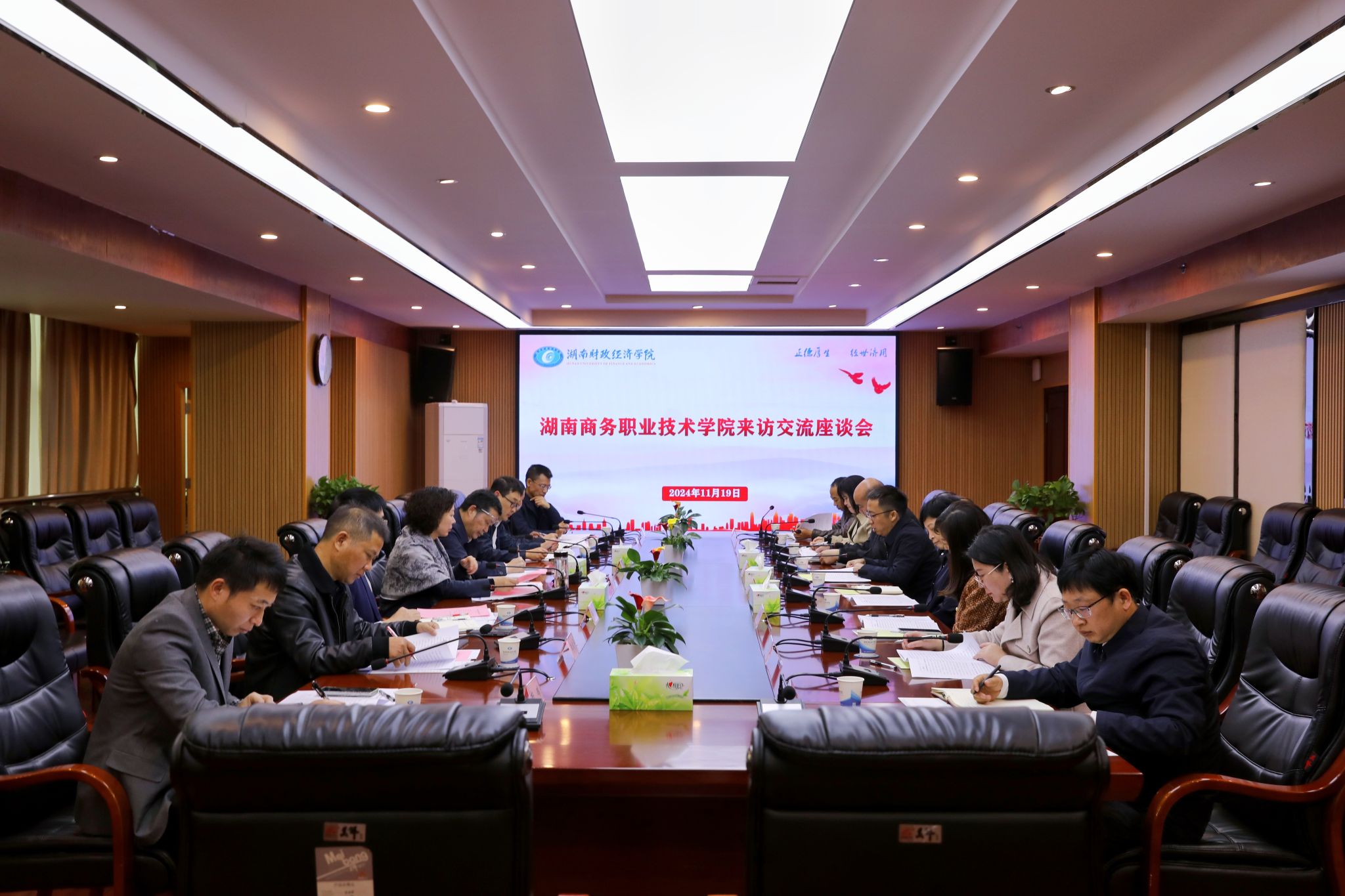 (本网讯)11月19日上午,湖南商务职业技术学院党委书记潘军、校长李定珍一行来校交流。校党委书记杨兰英、校长刘长庚、副校长郭国强在办公楼715会议室接待来宾。郭国强主持座谈会。座谈会现场潘军、李定珍简要介绍了“楚怡工匠计划”2023级市场营销专业联合办学实施情况与成效,表示学校重视试点工作,已初步建立学生管理机制,在两校努力下制订了特色人才培养方案,构建区别于普通本科人才培养模式,打造高质量师资队伍,突出技术技能和工匠精神培养。...