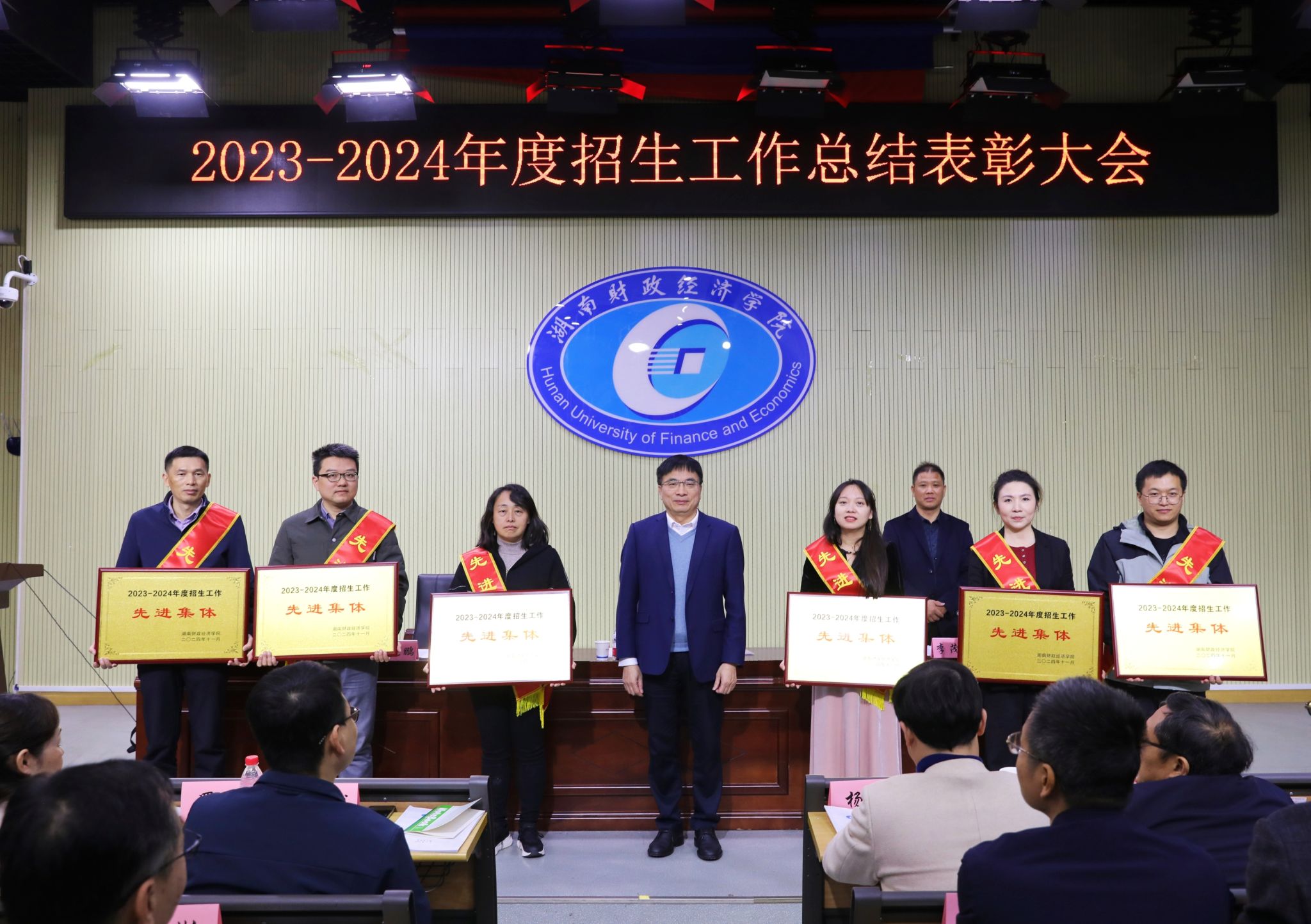 (本网讯)11月20日下午,学校在二教学楼2J03学术报告厅召开招生工作总结表彰大会,总结2023-2024年度招生工作,并对年度招生工作先进集体和先进个人进行表彰。副校长郭国强出席会议并为获奖单位和个人颁奖。大会现场郭国强对2023-2024年度招生工作给予高度评价。他指出,面对新一轮科技革命和产业变革对财经院校学科布局的新挑战,面对社会对财经院校人才培养的新期待,学校必须主动求变以适应和服务国家战略需求。我们要深刻领悟党的二十届三中全会关于优化高等教育布局的重要部署,...