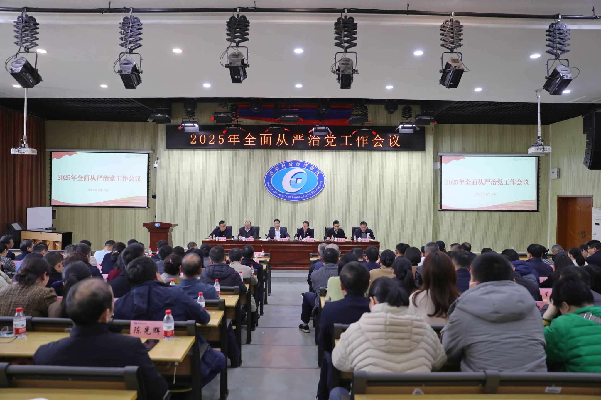 (本网讯)3月19日下午,学校召开2025年全面从严治党工作会议。全体在校校领导、纪委委员,全体中层干部,职能部门科级干部参加会议。会议由校党委副书记苏玲主持。会议现场会议组织观看了正风反腐警示教育片,对2024年学校全面从严治党工作进行总结分析,并对2025年全面从严治党工作进行安排部署。会议指出,要切实提高政治站位,深刻认识“两个历史主动”的重大意义、“两个仍然”的重大判断、“两个确保”的使命任务,坚持将改革精神和严的标准落实到学校各项事业发展中,...