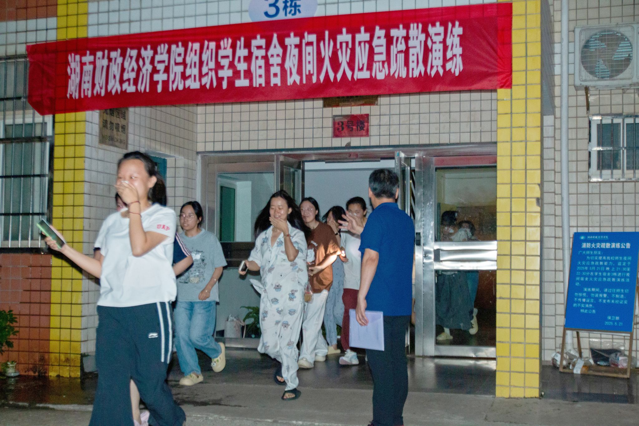 (本网讯)为强化全员消防安全意识,提升师生初起火灾自救、人员疏散处置及岗位协同配合能力,5月21日晚,世界杯官网在学生宿舍3栋组织开展夜间火灾应急疏散演练。副校长刘钟理担任演练总指挥,相关职能部门、二级学院负责人,宿舍思政辅导员、班级辅导员,以及物业公司、保安队、学生110护卫队协同行动,该栋近1700名师生参与其中。学生应急疏散现场 詹志清/摄演练以“宿舍楼夜间突发火灾”为场景,21时30分,随着总指挥一声令下“演练开始”...