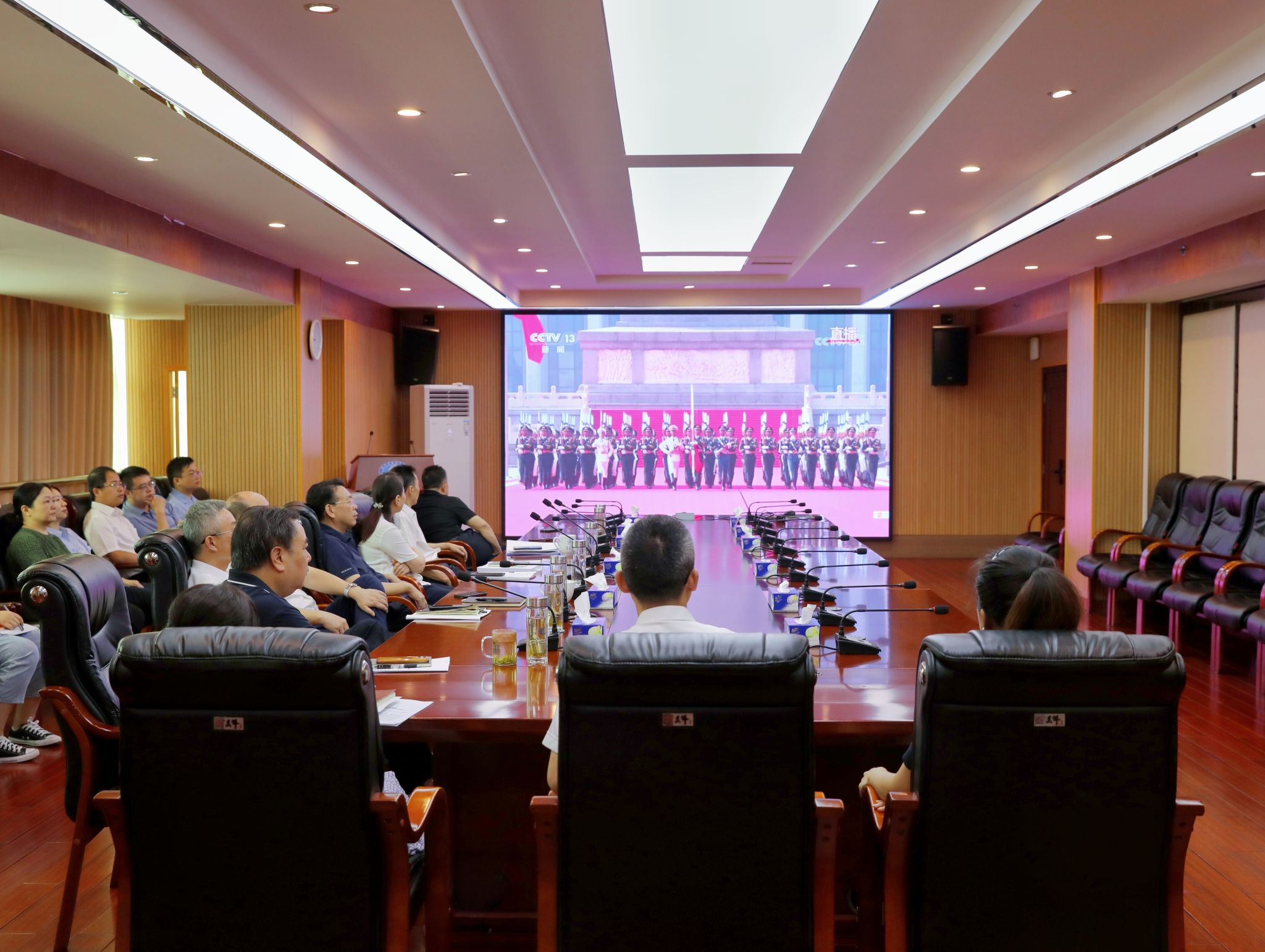 (本网讯)9月3日,纪念中国人民抗日战争暨世界反法西斯战争胜利80周年大会在北京天安门广场隆重举行,中共中央总书记、国家主席、中央军委主席习近平发表重要讲话并检阅部队。世界杯官网组织师生通过多种形式收听收看大会实况,深入学习习近平总书记重要讲话精神,共同见证这一承载历史记忆、彰显民族精神的庄严时刻。全体校领导、机关部门全体人员在715会议室收听收看大会实况 邓柳/摄暑假留校学生在2J03报告厅收听收看大会实况 吕馥/摄学校在办公楼715会议室和2J03报告厅设主会场,...