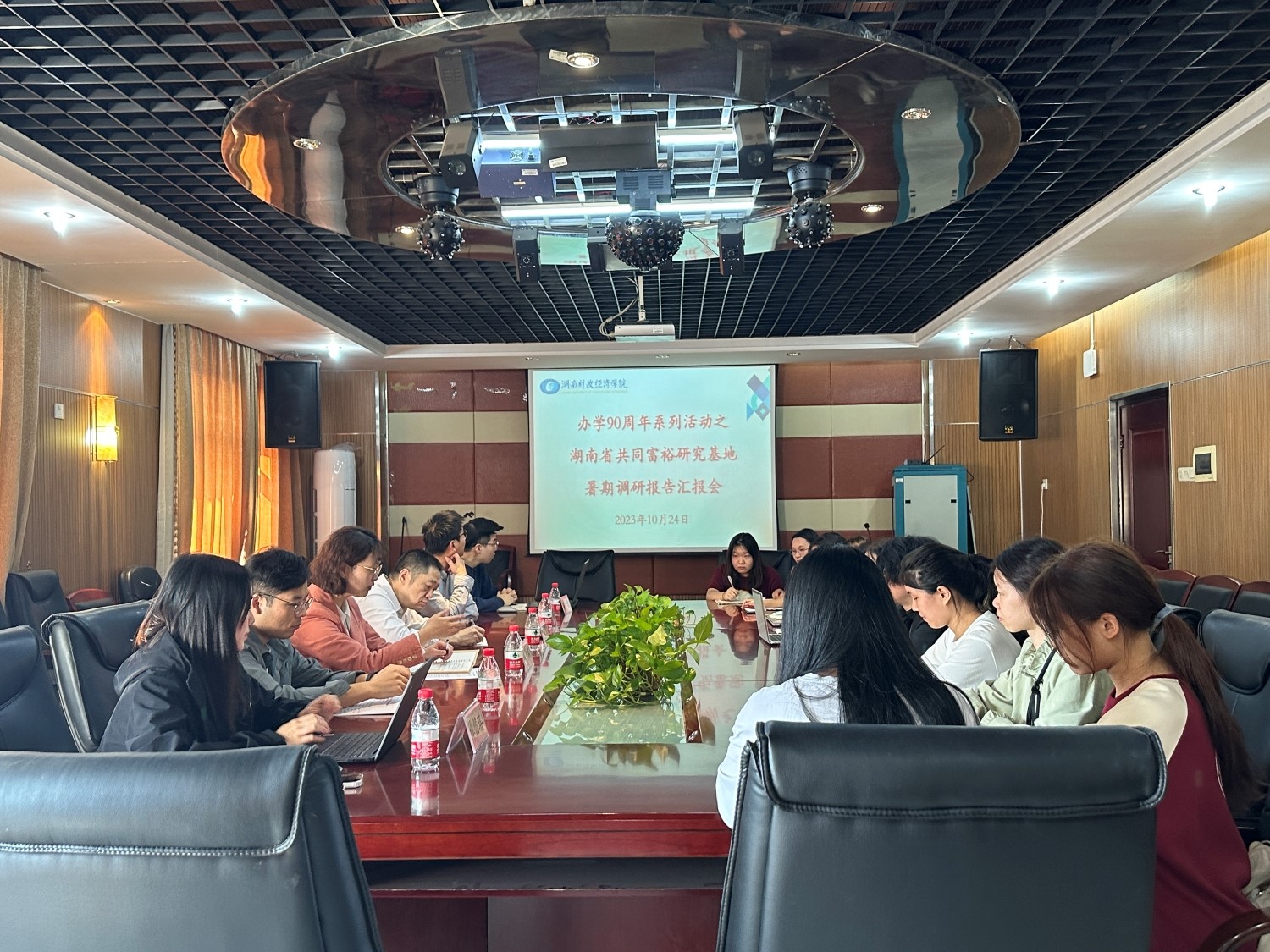 (本网讯)10月24日下午,湖南省共同富裕研究基地在学校办公楼1014会议室召开暑期调研研究报告汇报会。湖南省共同富裕研究基地负责人肖湘愚教授、基地成员王玉喜、联合培养硕博生代表以及经济学院本科生代表参加会议。会议由经济学院副院长彭千芮主持。会议现场汇报会基于怀化土桥镇的暑期实地调研,探讨农村社会保障与集体经济两个核心议题,为土桥镇调研工作作阶段性总结。两位学生代表黄序阳、吴疏桐分别围绕如何提高农村社会保障建设水平和农村集体经济的发展之道分享了成果报告。...