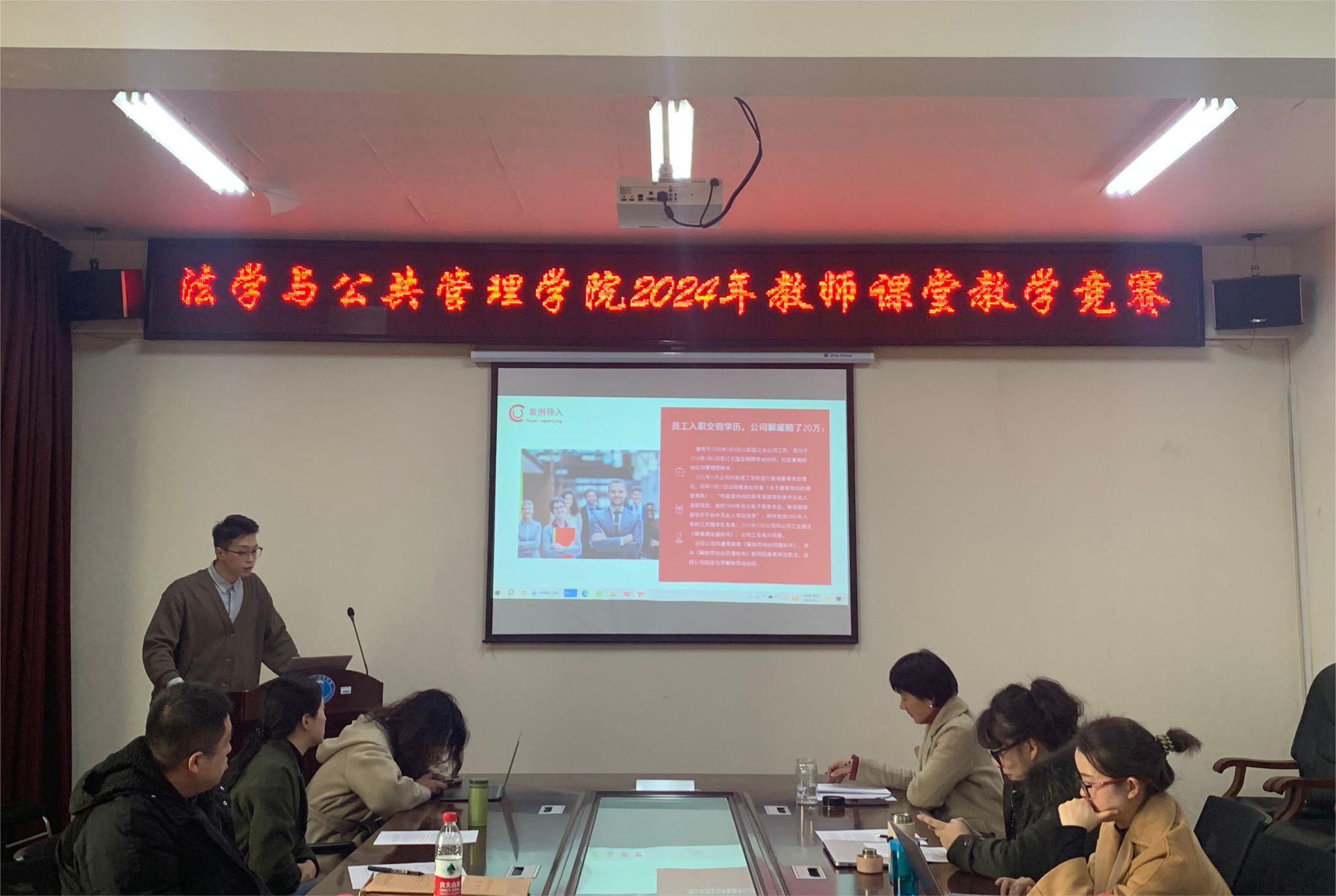 (本网讯)为提升教师课堂教学水平,激发教师的教学热情和创新活力,3月7日下午,法学与公共管理学院在办公楼414会议室举办教师课堂教学竞赛。学院共有15位青年教师积极参赛。比赛现场为确保竞赛顺利进行,学院成立了以院党委书记欧倩为组长、副院长彭赛红为副组长,各专业系系主任为成员的教学竞赛工作小组。工作小组精心制定了竞赛方案,并广泛发动、认真组织,为参赛教师提供了良好的竞赛环境。赛前,彭赛红介绍了课堂教学竞赛要求,...
