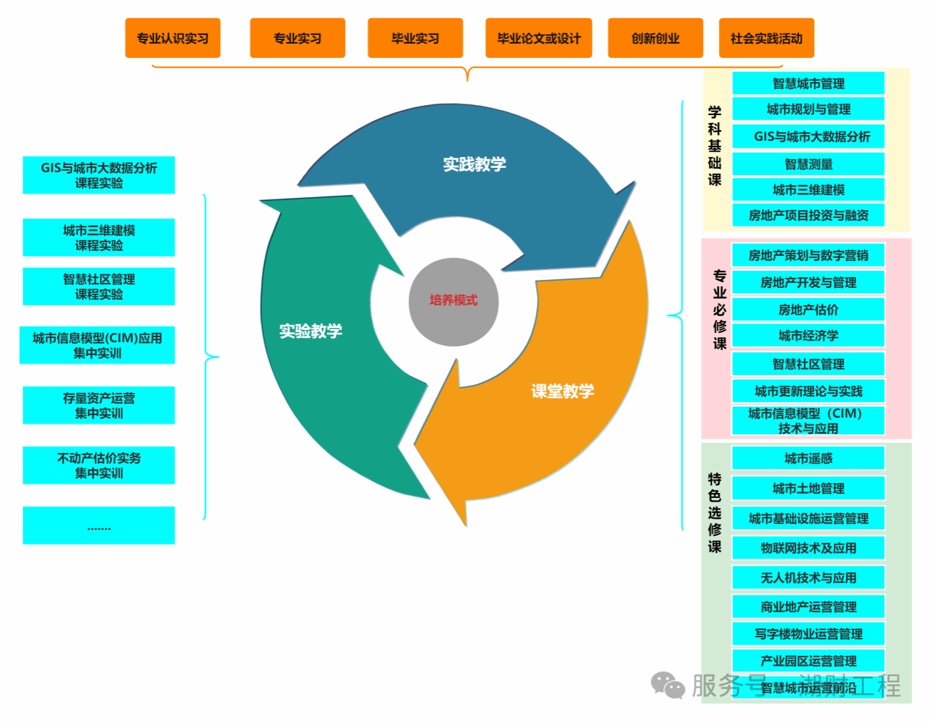 本专业立足国家战略与产业升级需求,以“专业素养奠基、实践能力赋能、思维格局引领”为培养理念,聚焦城市管理、数智技术、资产运营三大前沿领域,构建“四维联动”课程体系(学科基础课夯实理论根基+专业必修课强化核心能力+特色选修课对接行业动态+实验实践课贯通产教融合),通过“三课堂协同”机制(智慧教室理论教学→实验中心模拟训练→实践基地真实项目),形成“需求导向—能力递进—成果输出”的闭环培养路径。