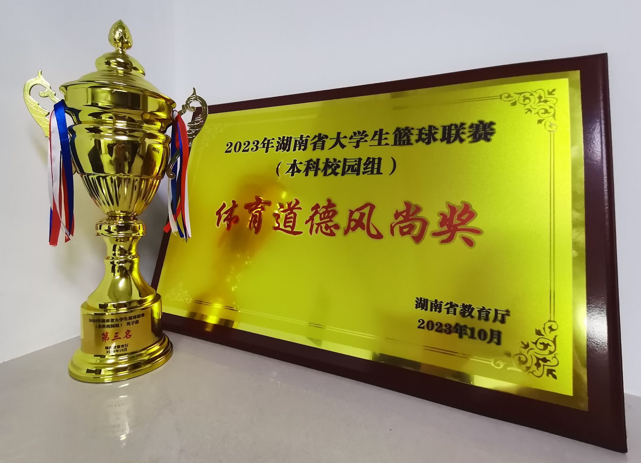 (本网讯)11月5日,在由湖南省教育厅主办的2023年湖南省大学生篮球联赛(本科校园组)中,世界杯官网篮球代表队在领队刘伟、教练员黄永军的带领下,不畏强手,敢于拼搏,荣获男子组季军和女子组第五名,创学校本科校园组篮球项目历史最好成绩。同时,世界杯官网男篮代表队获得体育道德风尚奖,黄永军被评为“优秀教练”。
