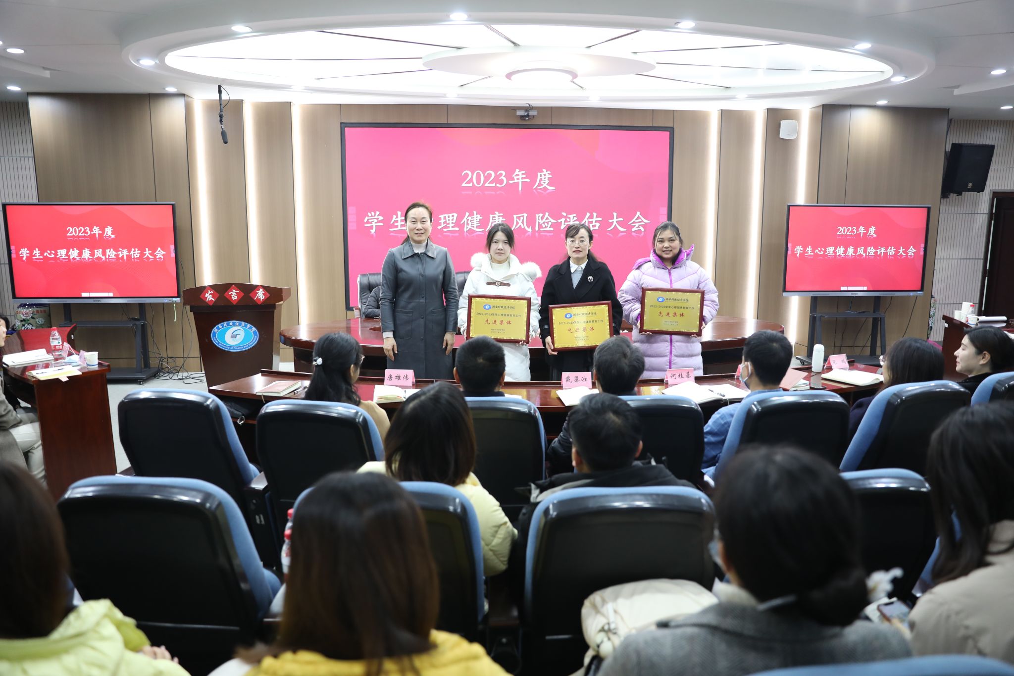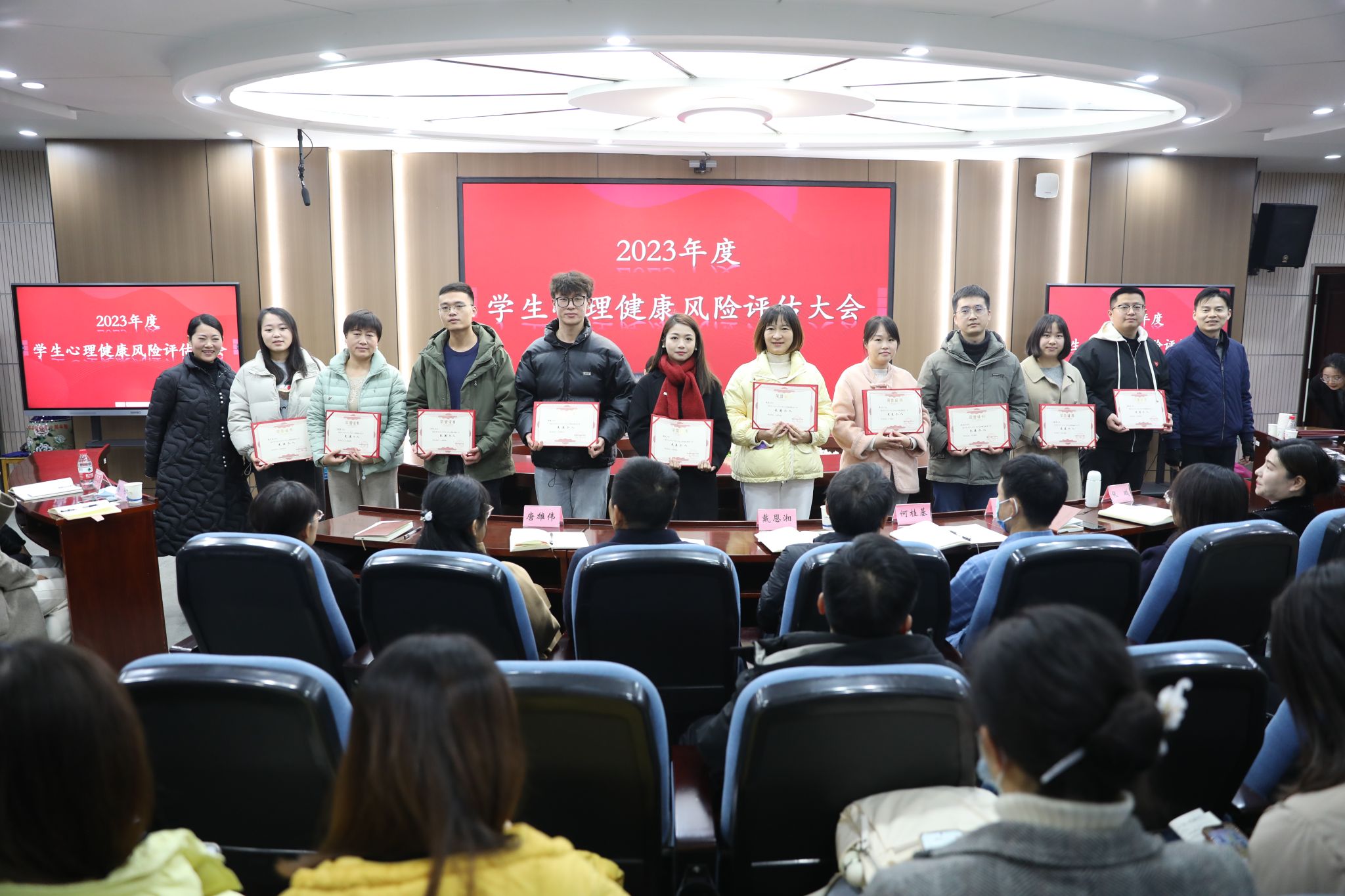 会议现场对2023年度心理健康教育工作先进集体和先进个人进行表彰和颁奖