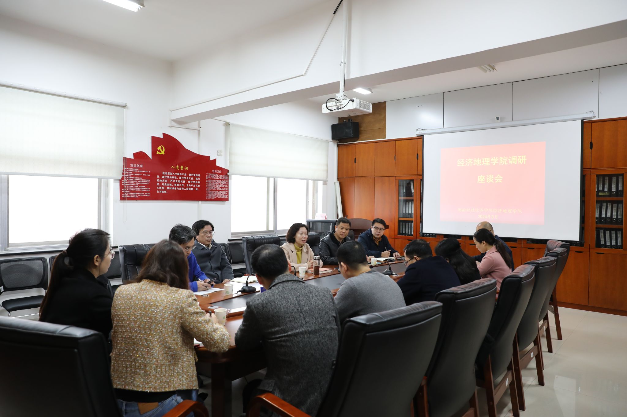 在随后召开的座谈会上,杨兰英听取经济地理学院、湖南经地科技发展有限公司相关负责人的工作汇报,了解经济地理学院学科建设、师资队伍、人才引进、科研成果、《经济地理》期刊近期办刊、教学管理、学科平台搭建、党建工作、意识形态工作、学生工作等情况和湖南经地科技发展有限公司生产经营情况、主营业务类型、横向课题研究和技术团队优势,并详细询问经济地理学院、经地科技发展有限公司目前存在的问题及下一步工作思路。